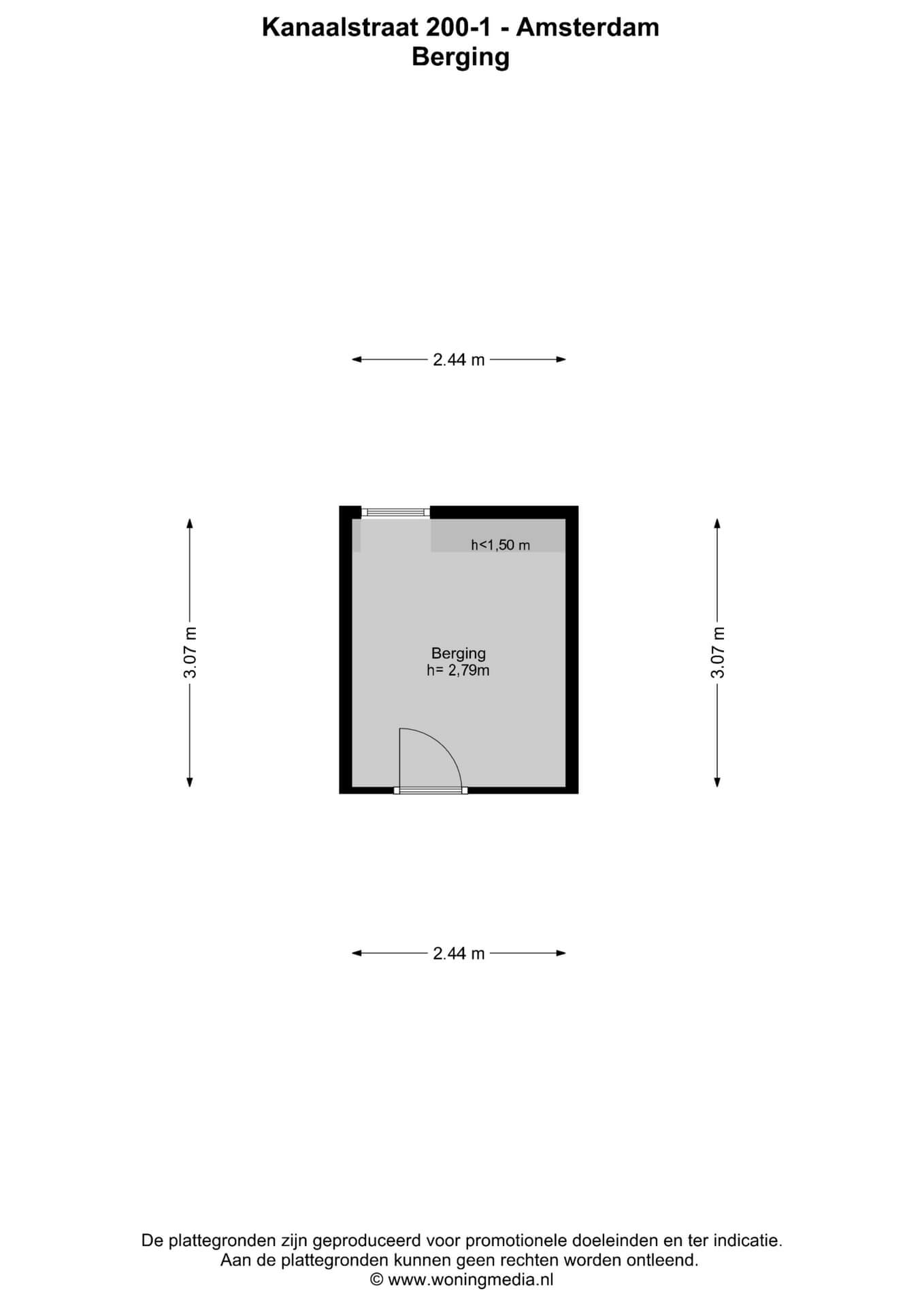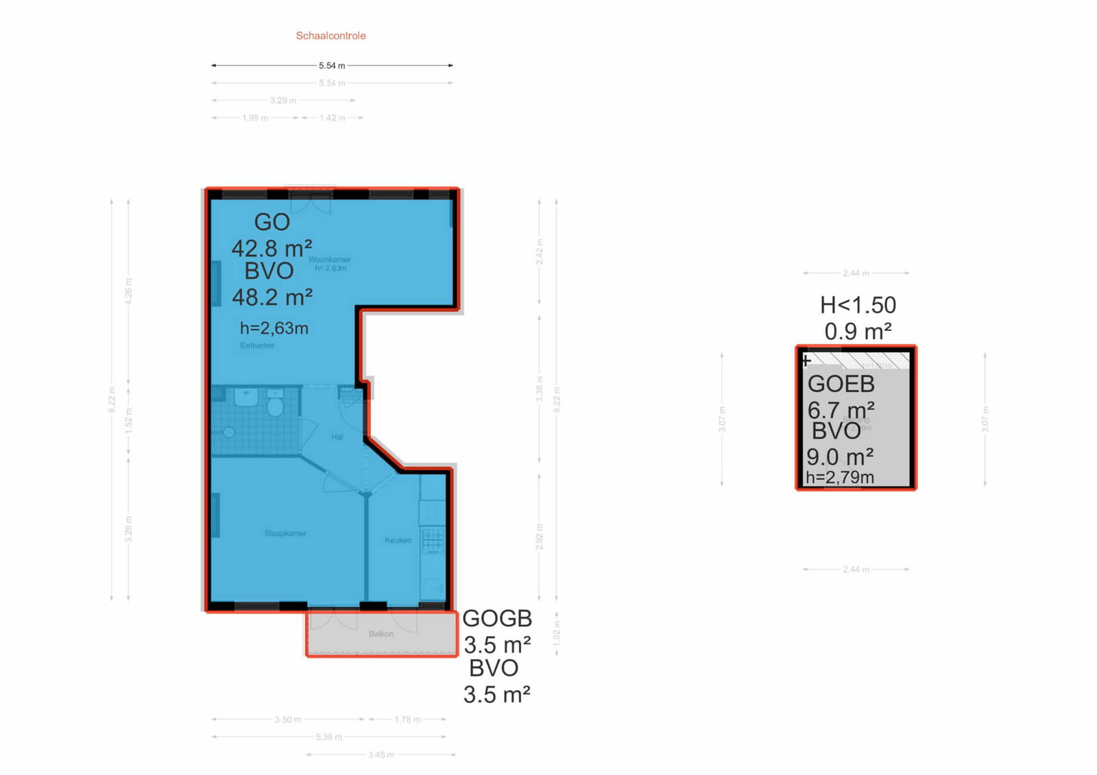 Woonoppervlak van ca. 43 m² (NEN2580) en berging (ca. 7 m²) boven in het pand.