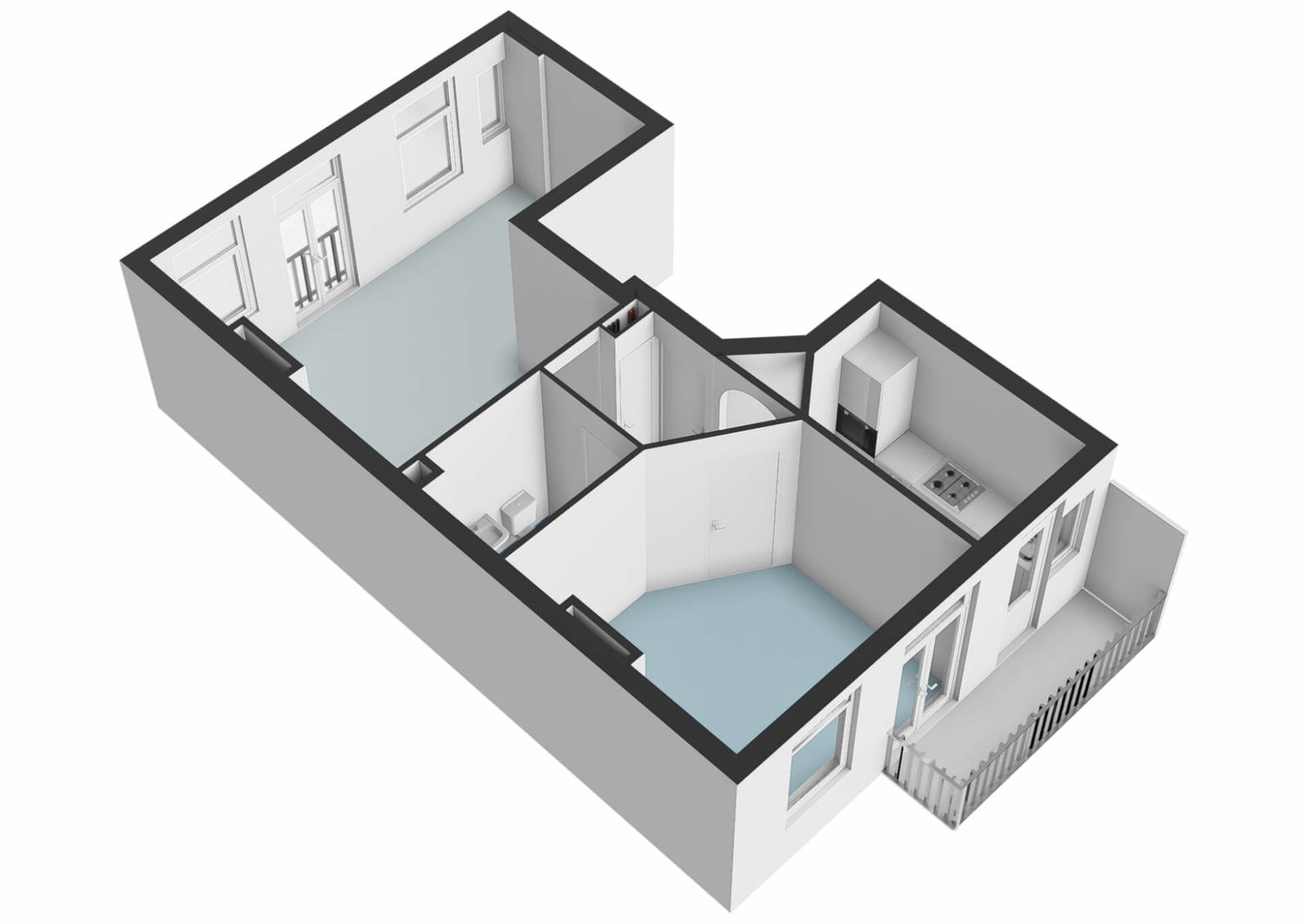 Het appartement is ingemeten op 43 m², maar voelt veel ruimer. De indeling is efficiënt en logisch, met een fijne flow van voor naar achter.