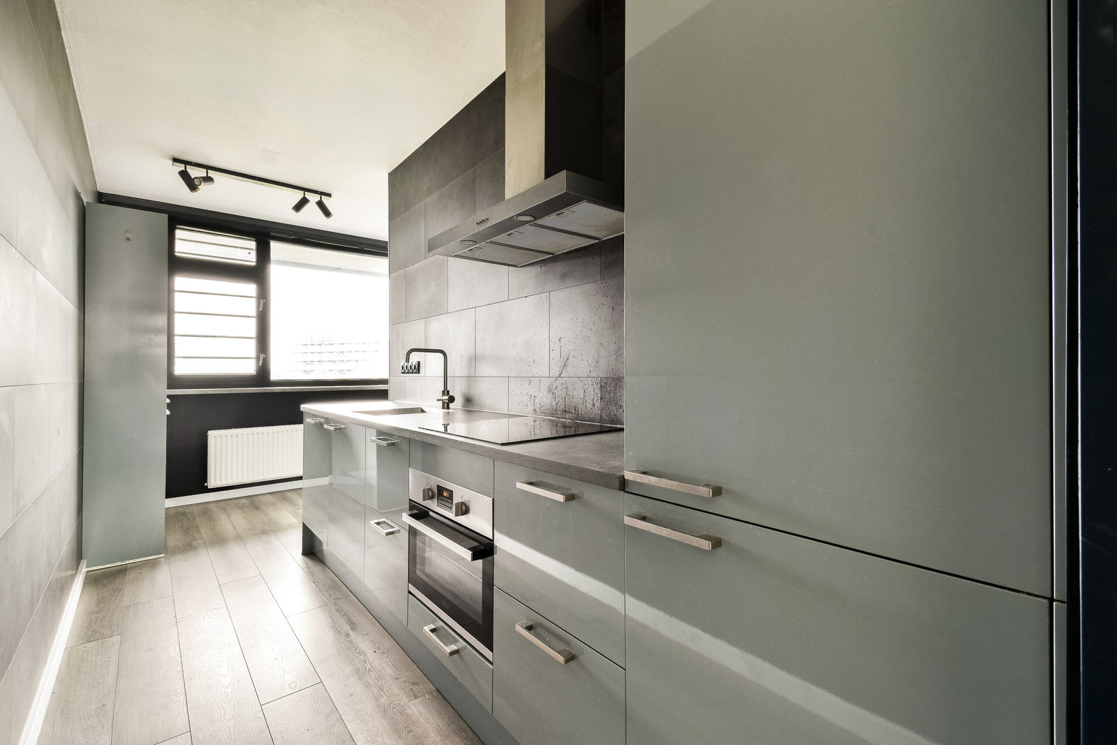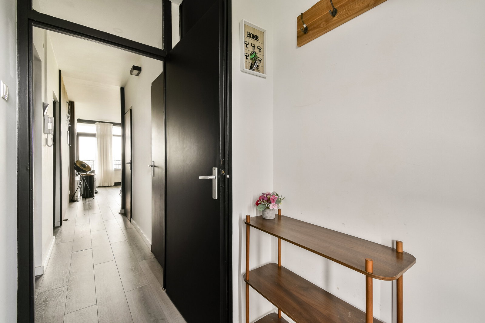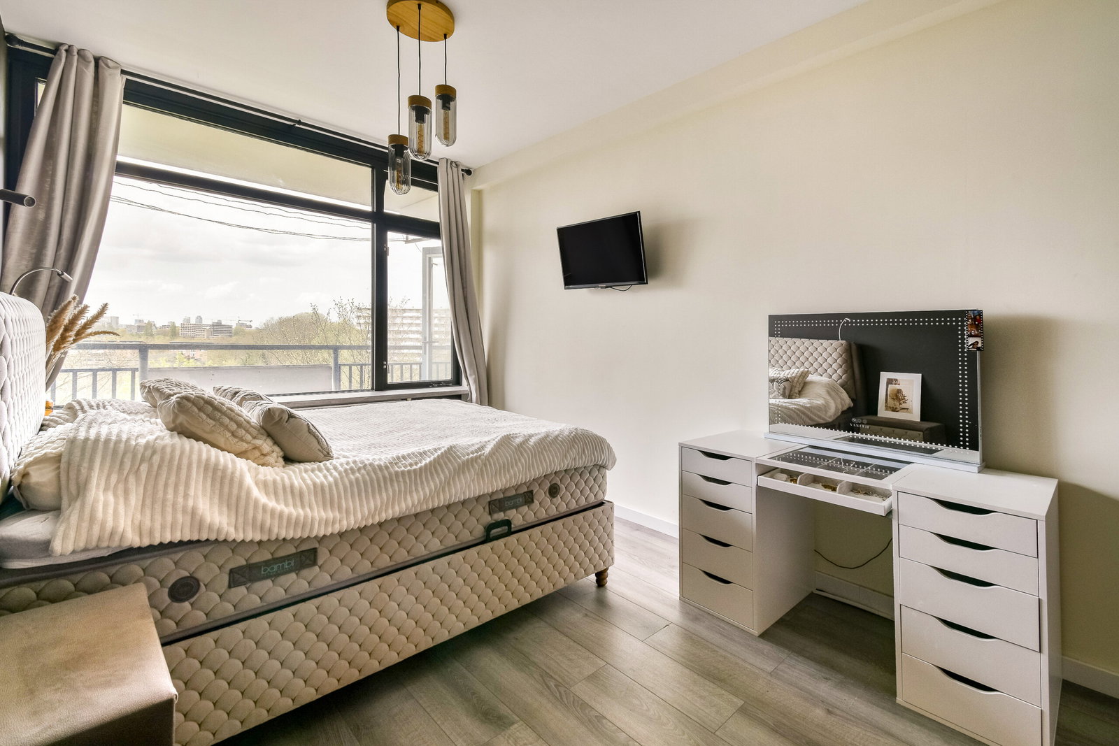 Via de entree kom je in het tochtportaal met meterkast, dat toegang biedt tot de centrale hal van de woning. Vanuit de hal zijn diverse vertrekken bereikbaar. Aan de voorzijde bevindt zich de eerste slaapkamer. Tevens zijn vanuit de hal het separate toilet en de volledig vernieuwde badkamer bereikbaar. De moderne badkamer is stijlvol afgewerkt en voorzien van een douche, wastafel en hedendaagse voorzieningen. De woning is slim heringedeeld: de voormalige eetkamer en tweede slaapkamer zijn samengevoegd waarbij tevens een praktische inloopkast is gerealiseerd. De ruime en lichte woonkamer is aan de achterzijde gelegen en geeft direct toegang tot het brede balkon op het westen – een heerlijke plek om te ontspannen en te genieten van het uitzicht. De keuken is bereikbaar vanuit de woonkamer en is uitgevoerd met een moderne en praktische opstelling (aangepakt in 2022), voorzien van diverse inbouwapparatuur, waaronder een vaatwasser, koelkast/vriezer en een inductiekookplaat. Tevens bevindt zich hier de aansluiting voor de wasmachine.