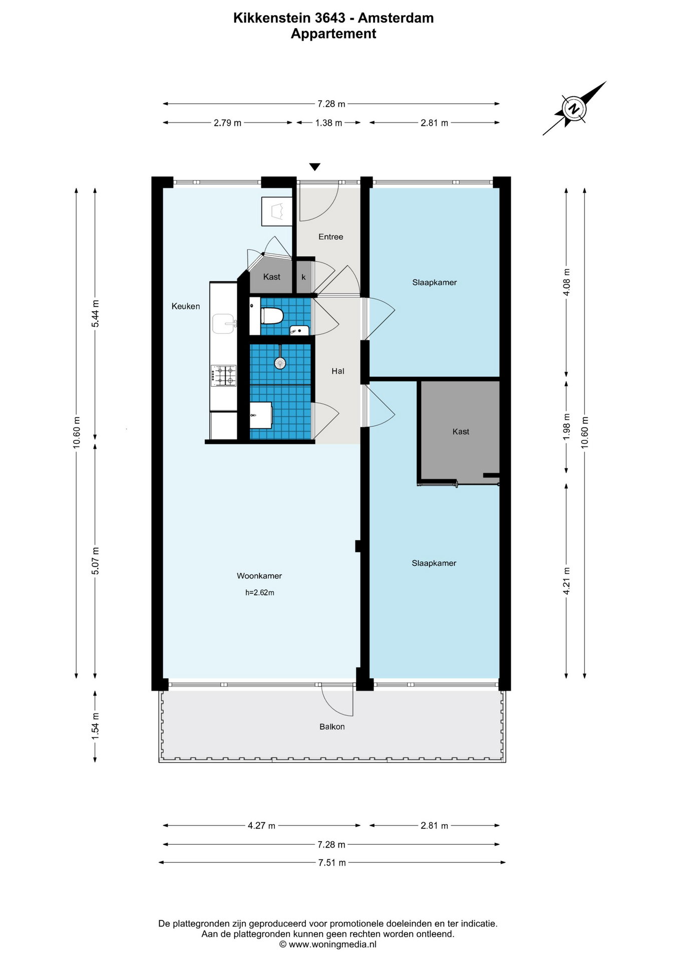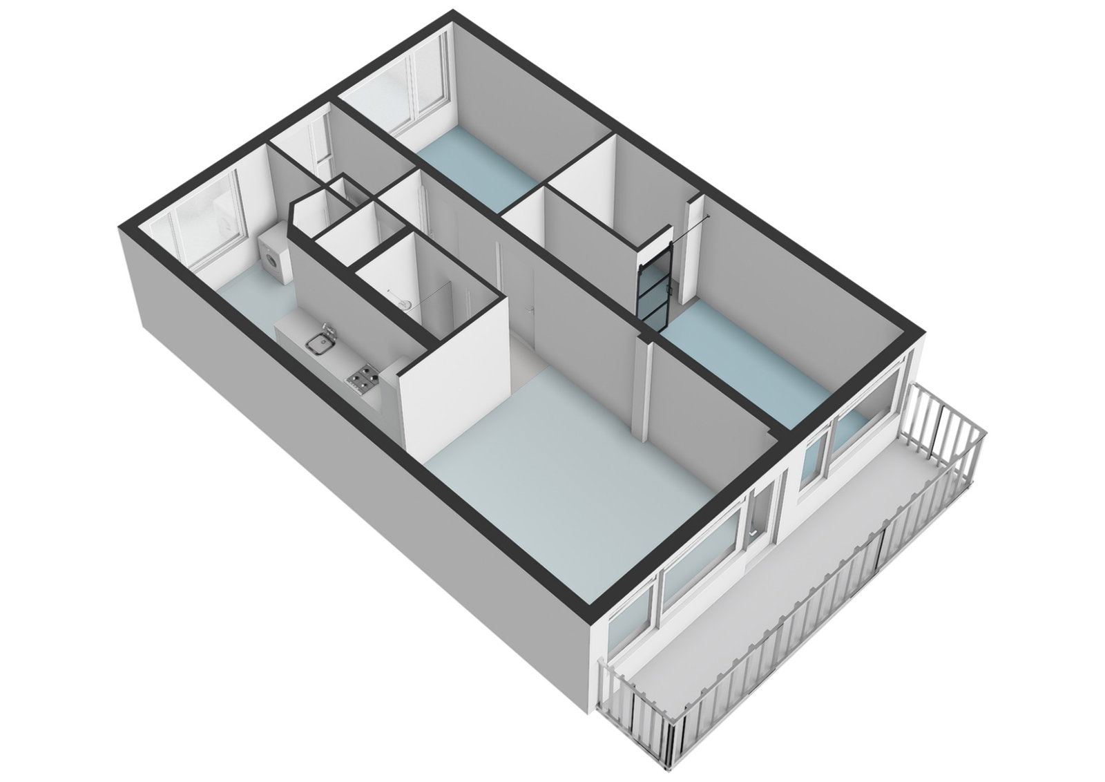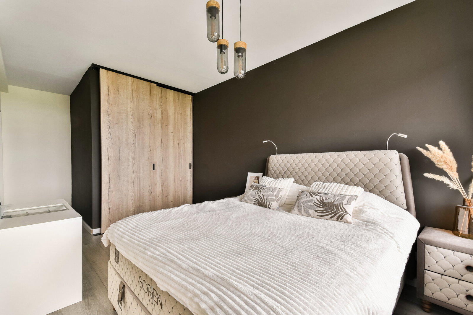Via de entree kom je in het tochtportaal met meterkast, dat toegang biedt tot de centrale hal van de woning. Vanuit de hal zijn diverse vertrekken bereikbaar. Aan de voorzijde bevindt zich de eerste slaapkamer. Tevens zijn vanuit de hal het separate toilet en de volledig vernieuwde badkamer bereikbaar. De moderne badkamer is stijlvol afgewerkt en voorzien van een douche, wastafel en hedendaagse voorzieningen. De woning is slim heringedeeld: de voormalige eetkamer en tweede slaapkamer zijn samengevoegd waarbij tevens een praktische inloopkast is gerealiseerd. De ruime en lichte woonkamer is aan de achterzijde gelegen en geeft direct toegang tot het brede balkon op het westen – een heerlijke plek om te ontspannen en te genieten van het uitzicht. De keuken is bereikbaar vanuit de woonkamer en is uitgevoerd met een moderne en praktische opstelling (aangepakt in 2022), voorzien van diverse inbouwapparatuur, waaronder een vaatwasser, koelkast/vriezer en een inductiekookplaat. Tevens bevindt zich hier de aansluiting voor de wasmachine.