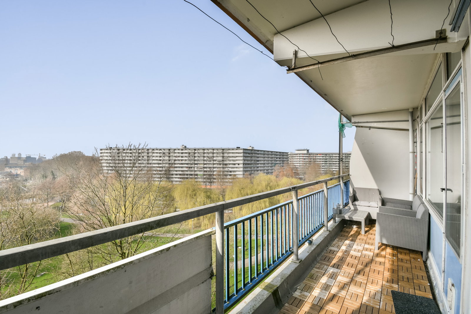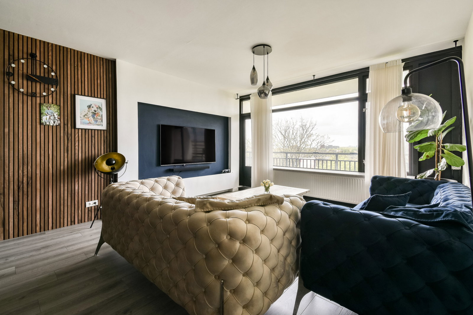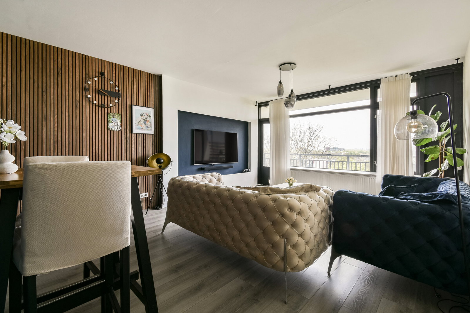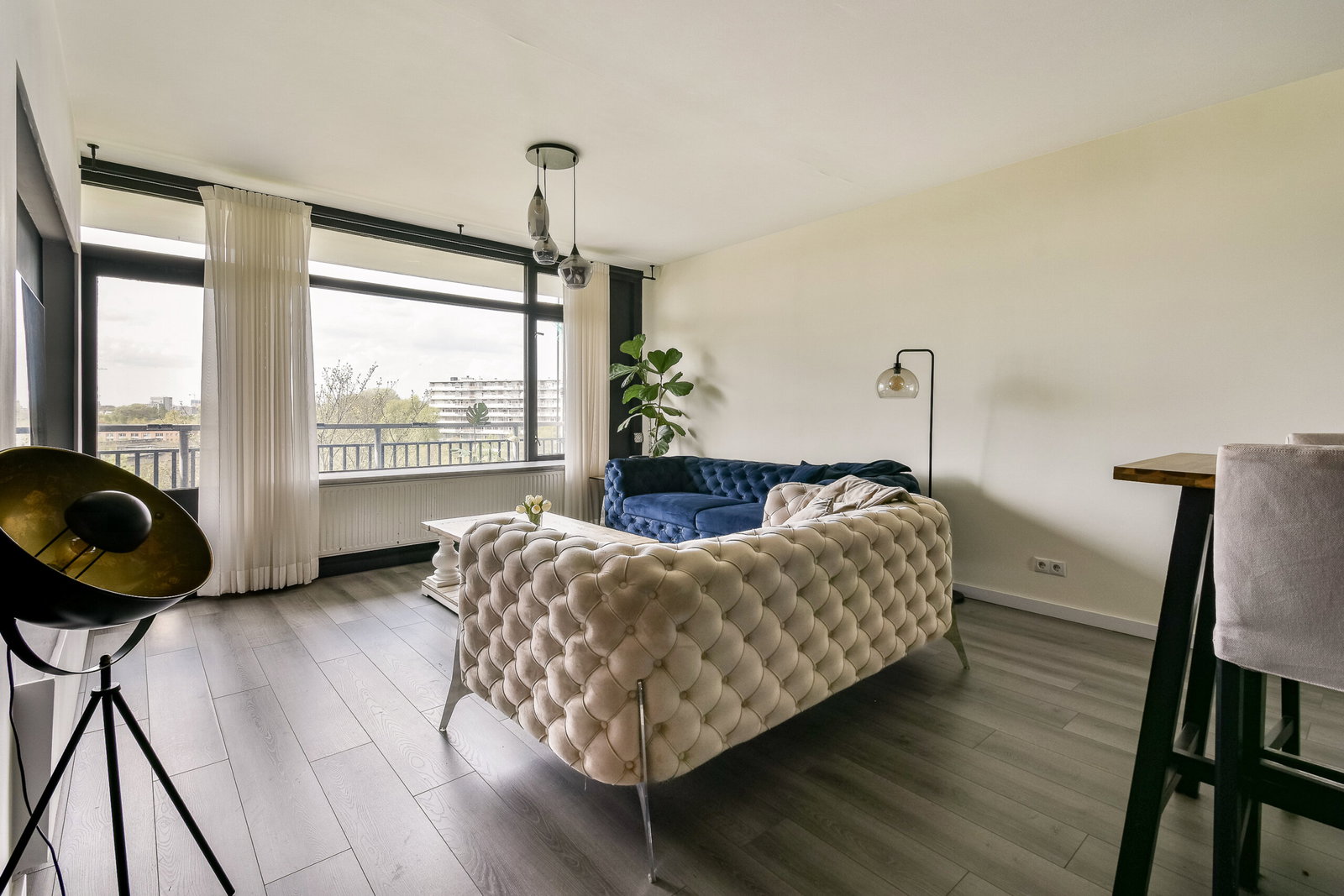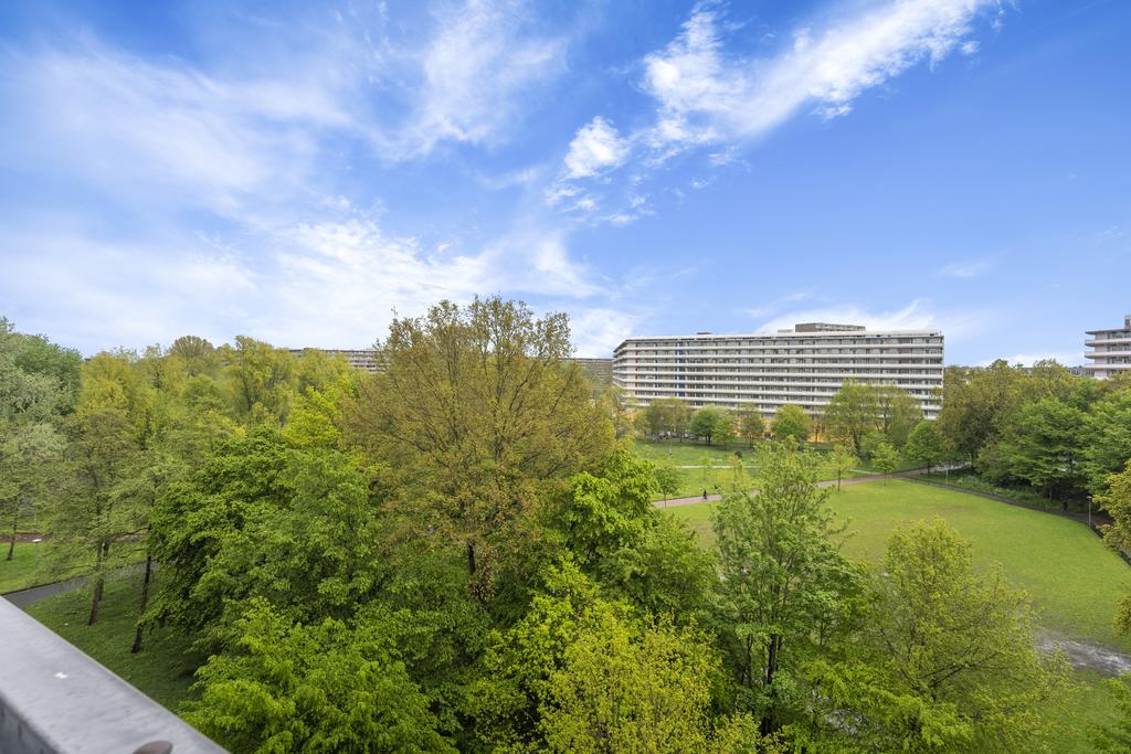 Dit royale en modern afgewerkte driekamerappartement is gelegen op de zesde verdieping en beschikt over een breed balkon op het westen dat zich uitstrekt over de volledige breedte van de woning. Hier geniet je van een schitterend vrij en groen uitzicht en heerlijke middag- en avondzon.