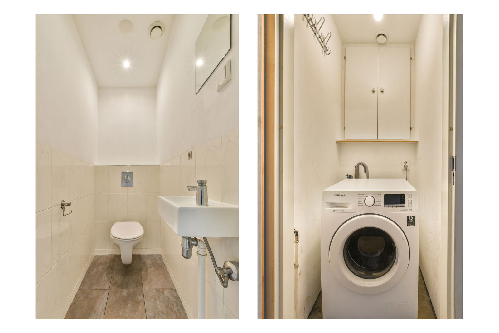 De ruime hal biedt ruimte voor de garderobe en tevens bevindt zich hier de meterkast. De lichte woonkamer is maar liefst 10 meter diep en geeft een ruimtelijk gevoel. De moderne en uitgebreide open keuken is voorzien van verschillende inbouwapparatuur zoals koelkast, vriezer, afzuigkap, inductieplaat en vaatwasser. De woonkamer biedt ruimte voor een grote eettafel en fijne zithoek. Vanuit zowel de woonkamer als de achterste slaapkamer is het zonnige balkon bereikbaar. Het woningbrede balkon van ca. 10 m2 heeft een spectaculair uitzicht en is gelegen op het zuidwesten. De badkamer is voorzien van een douche gedeelte, wastafel, het toilet is separaat gelegen. Naast het toilet heb je de interne berging voorzien van de wasmachineaansluiting. De handige externe berging is ca. 5 m2 en bevindt zich tevens op de derde verdieping. In de onderbouw is er een gemeenschappelijke afgesloten fietsenberging.