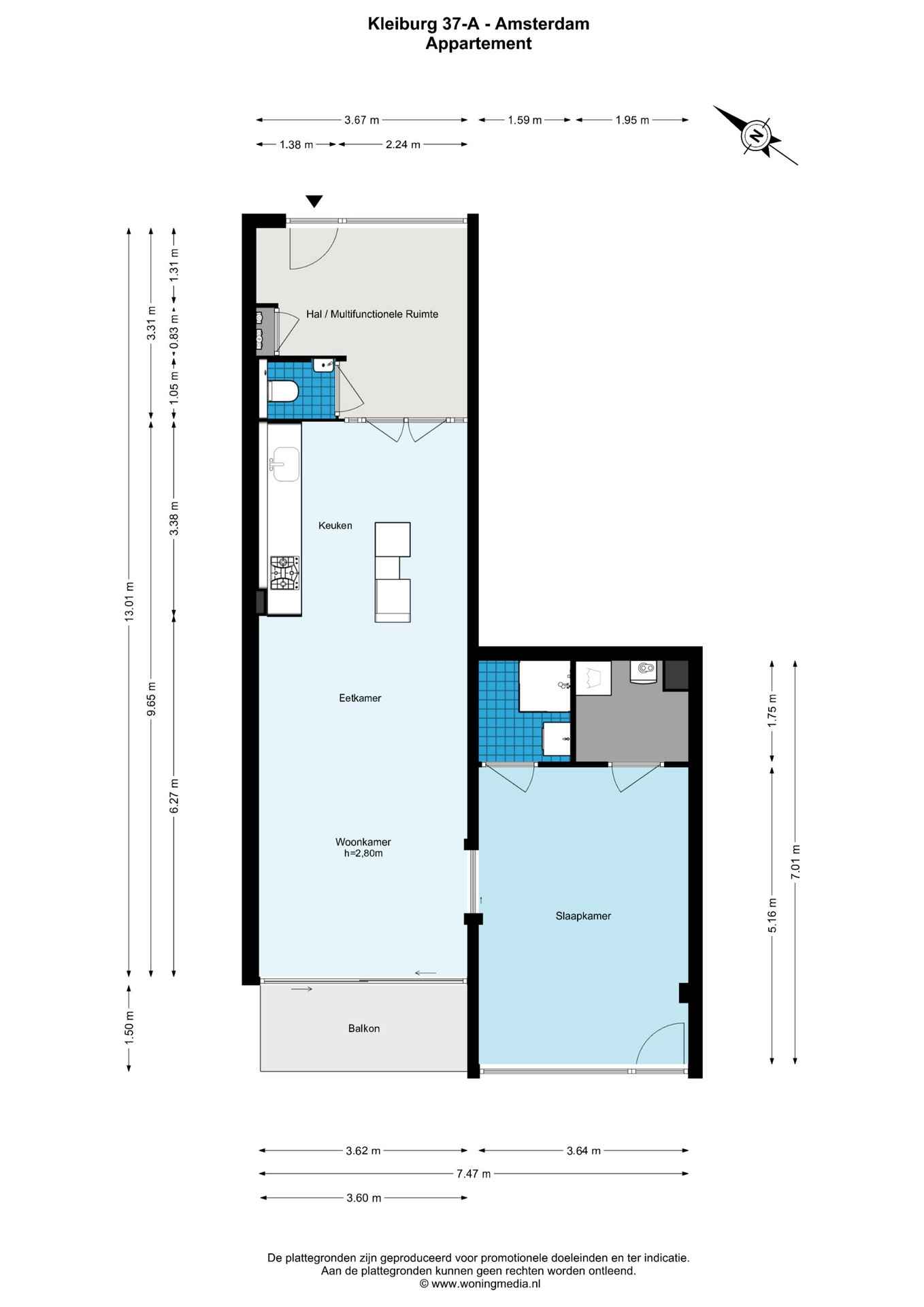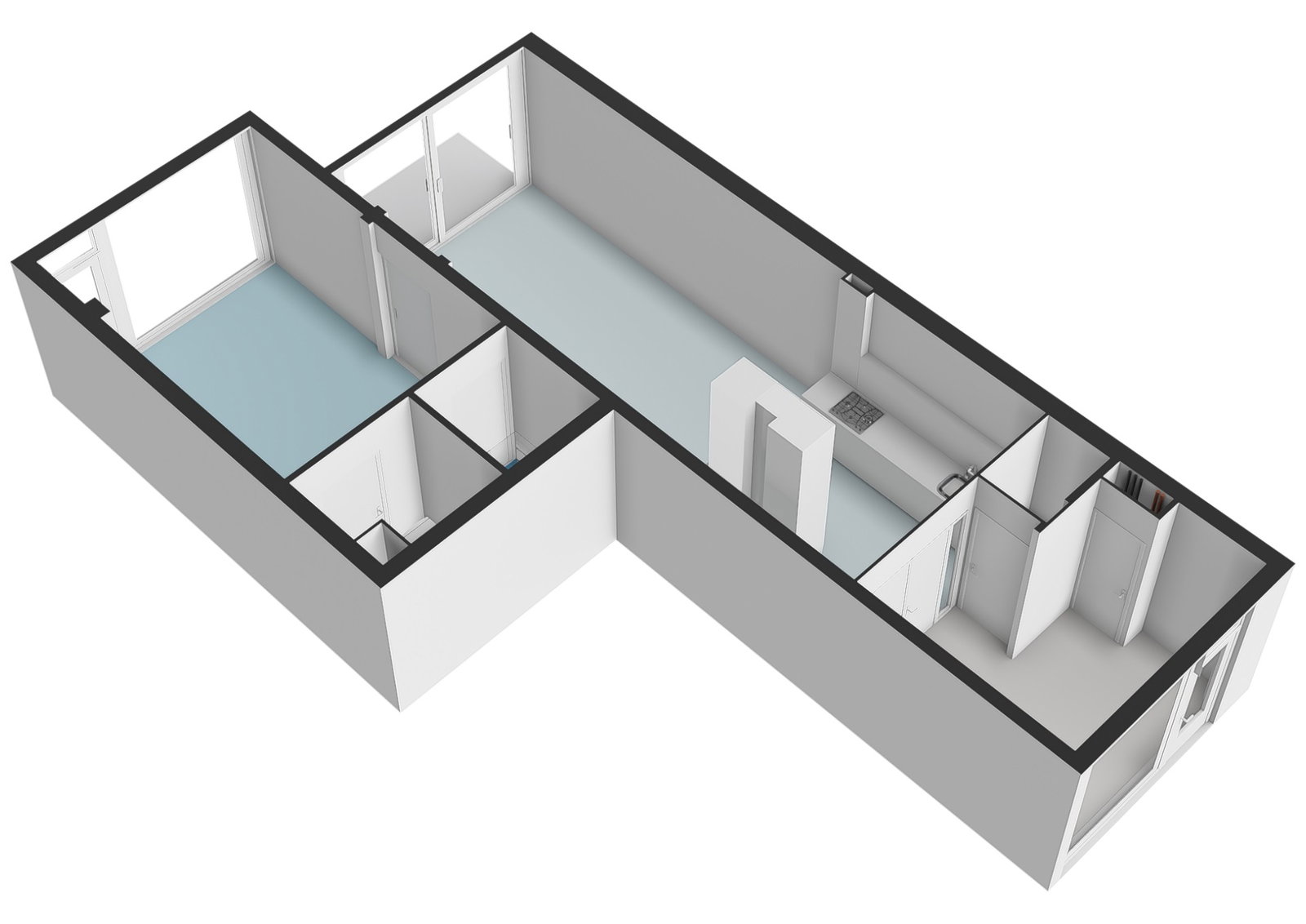 Via de eigen entree kom je binnen in de hal met toegang tot het separate toilet. Aan de achterzijde van de woning bevindt zich de ruime woonkamer met open keuken. De keuken is voorzien van diverse inbouwapparatuur, waaronder een koelkast met vriesvak, inductiekookplaat, oven en vaatwasser. De slaapkamer ligt eveneens aan de achterzijde en biedt toegang tot de badkamer en de berging met wasmachineaansluiting. De badkamer is modern uitgevoerd en beschikt over een inloopdouche en wastafel.
