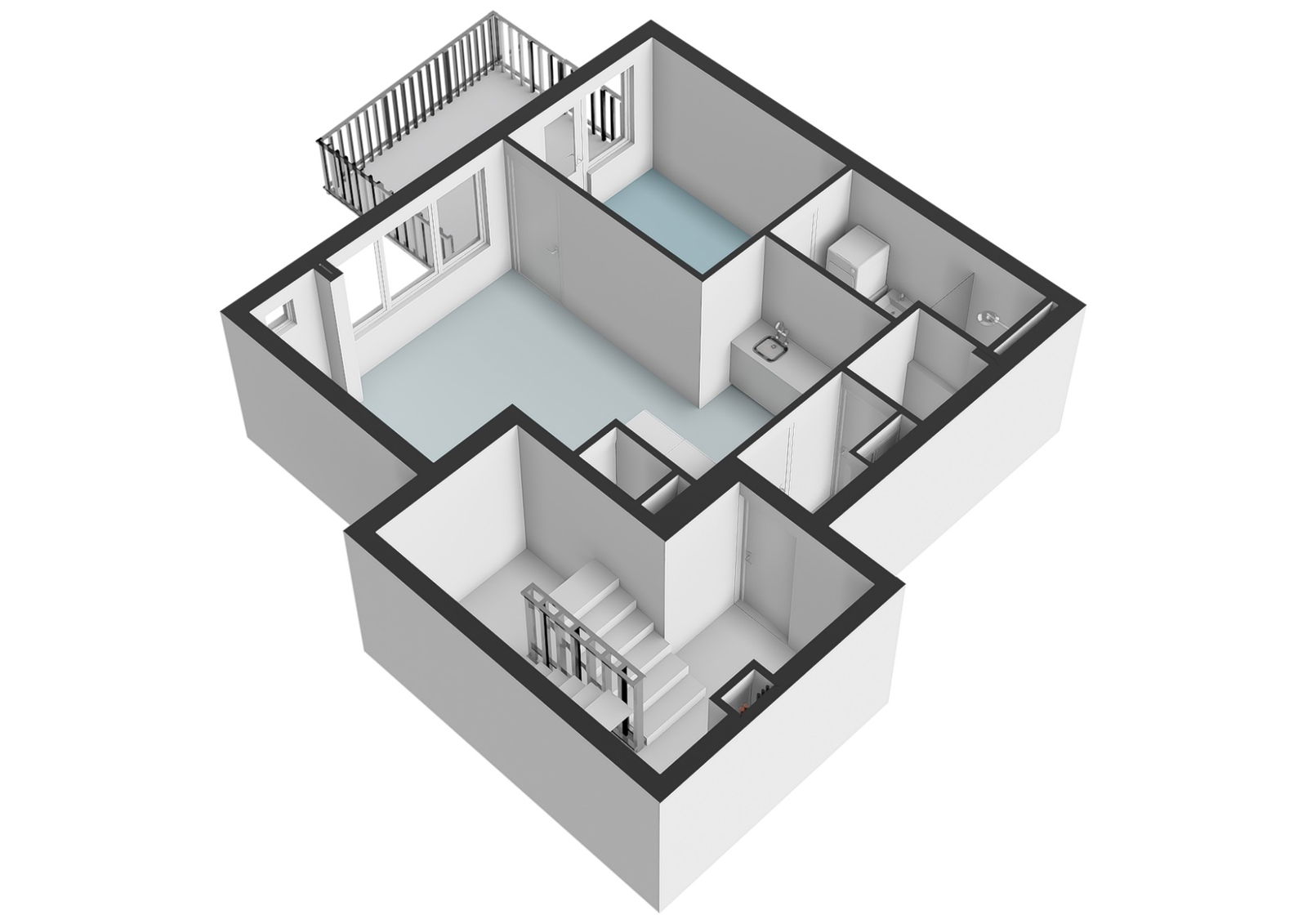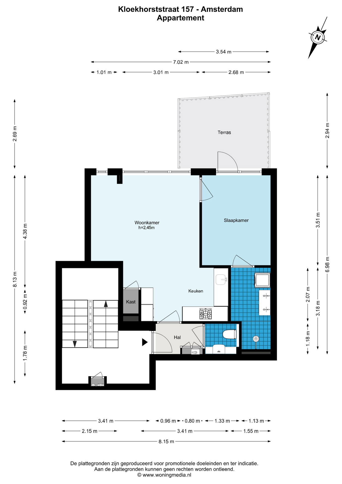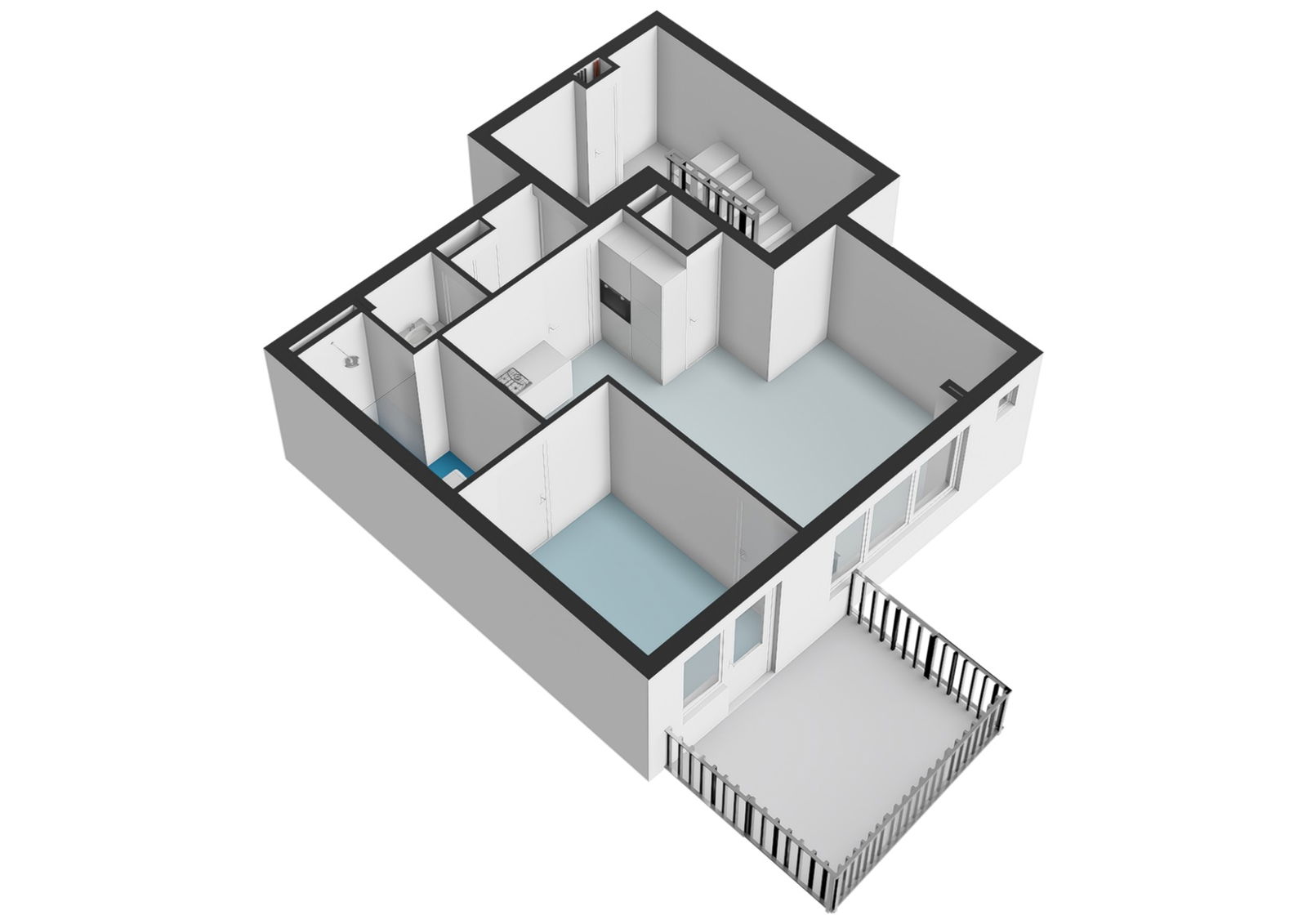 De woning bevindt zich op de derde verdieping. Entree, hal met toilet, lichte woonkamer met open keuken voorzien van diverse inbouwapparatuur (oven, vaatwasser, koel-vriescombinatie en kookplaat). Vanuit de slaapkamer heeft u toegang tot het zonnige dakterras. De badkamer is uitgerust met een douche, wastafel en wasmachineaansluiting.