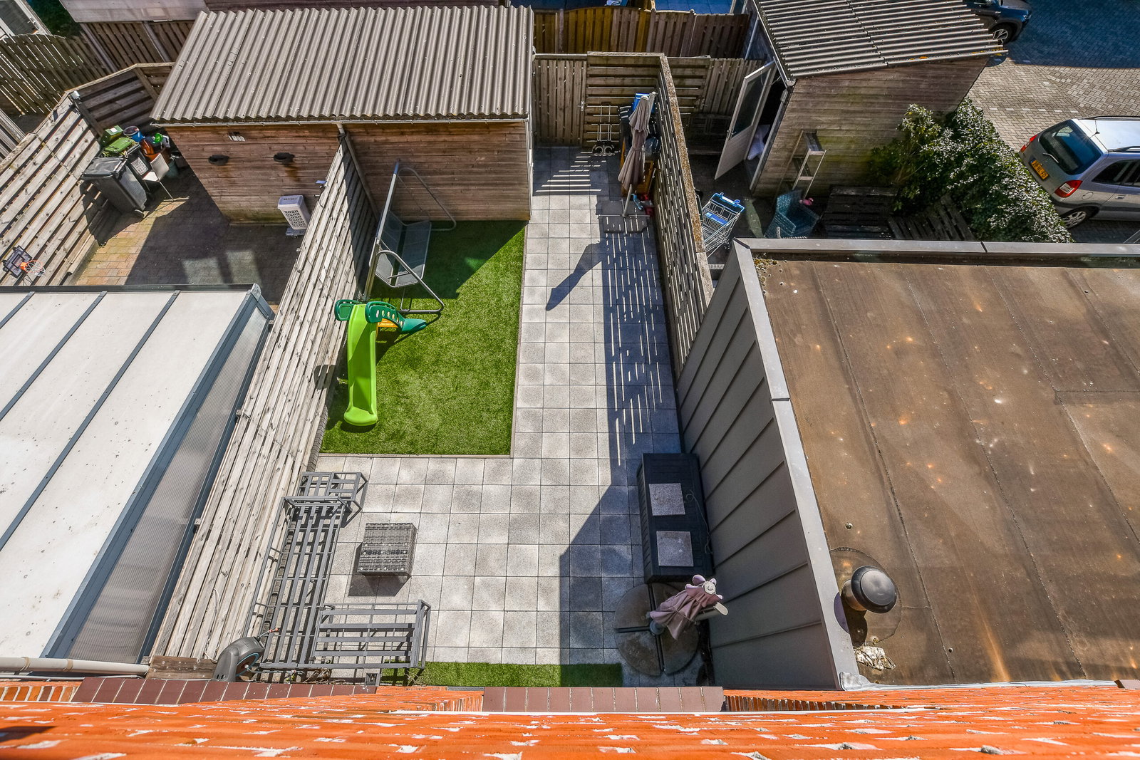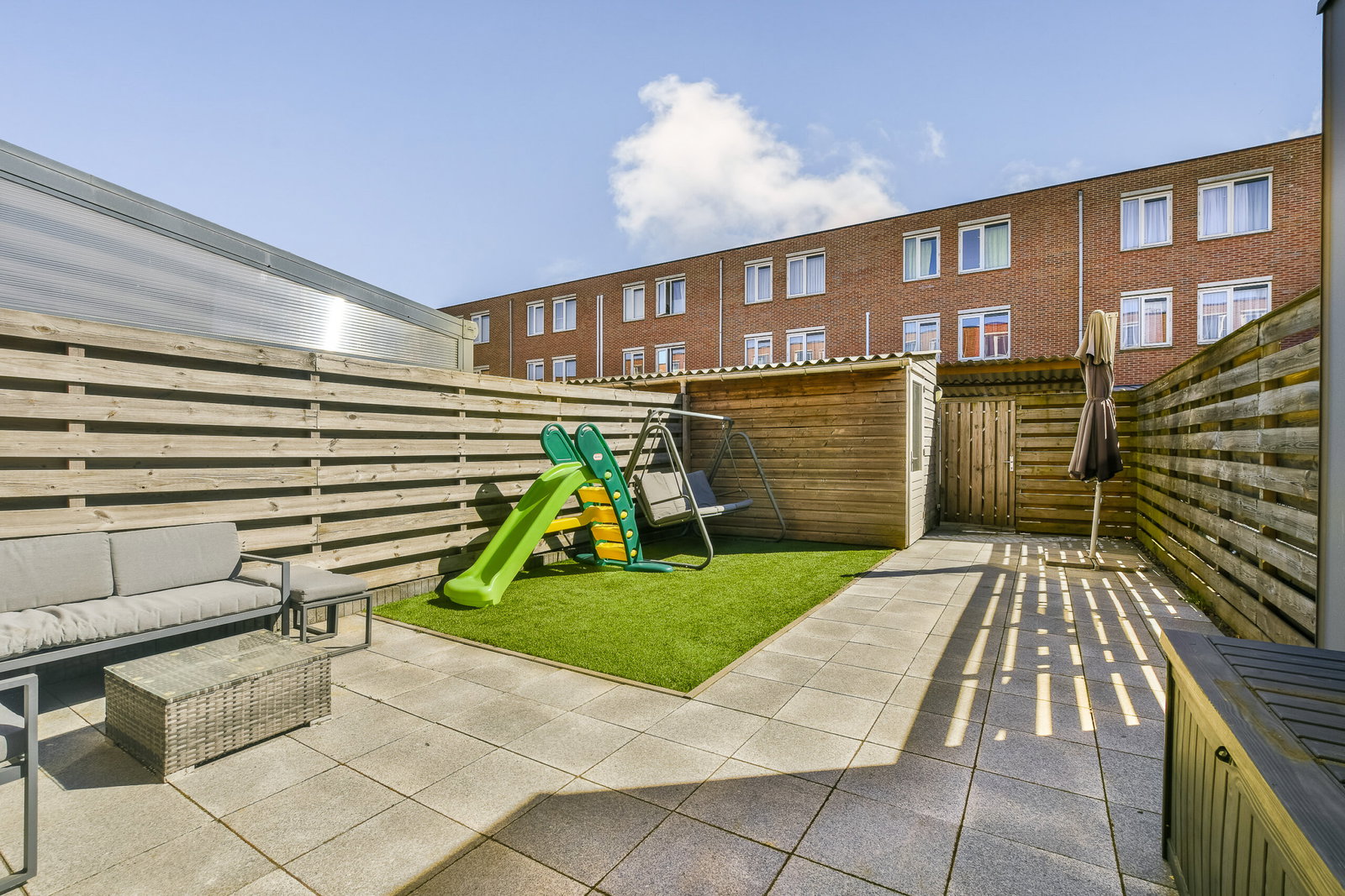 Royale achtertuin (noordoost) met achterom.