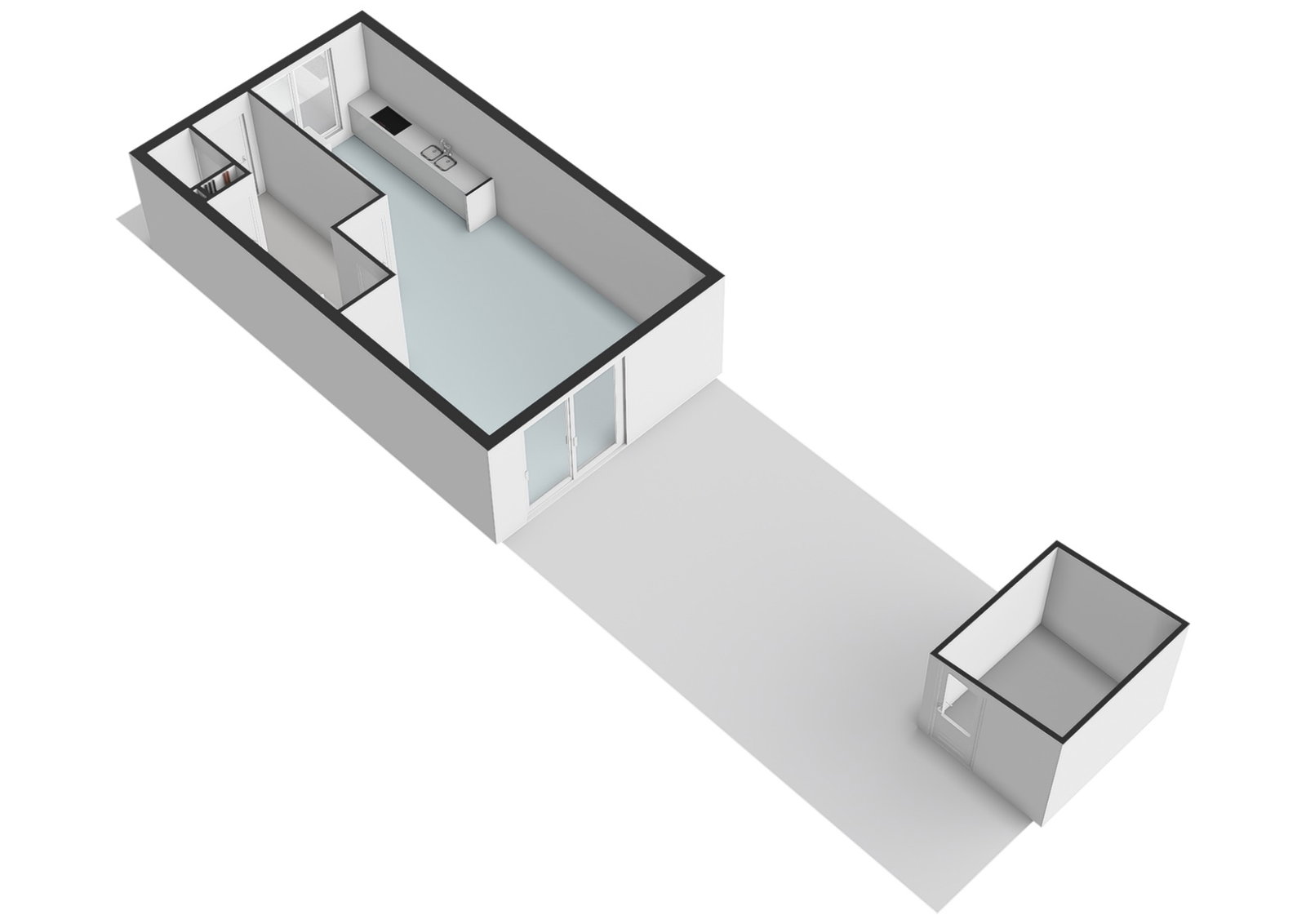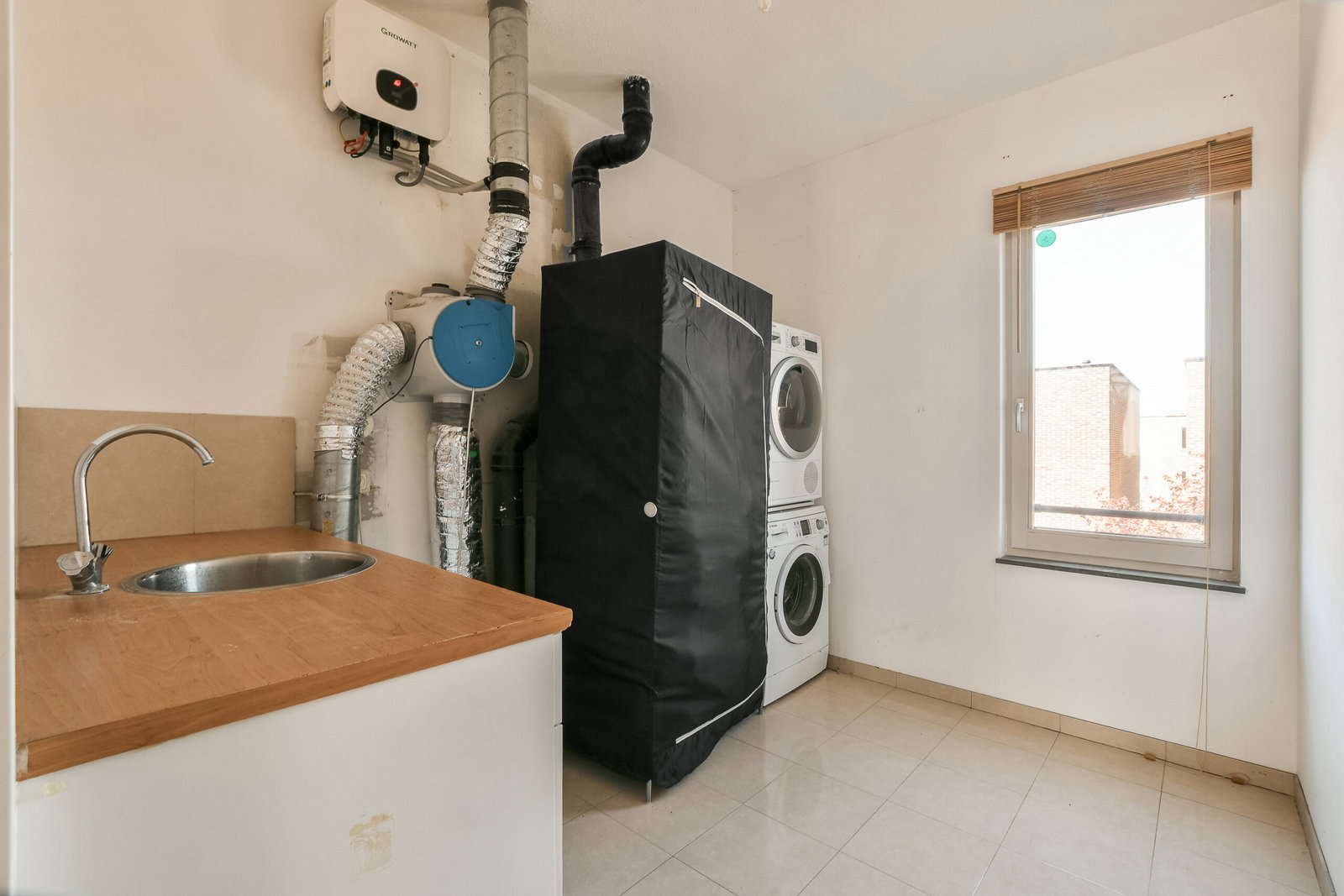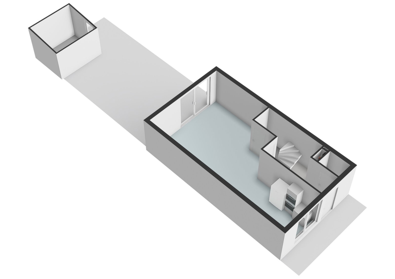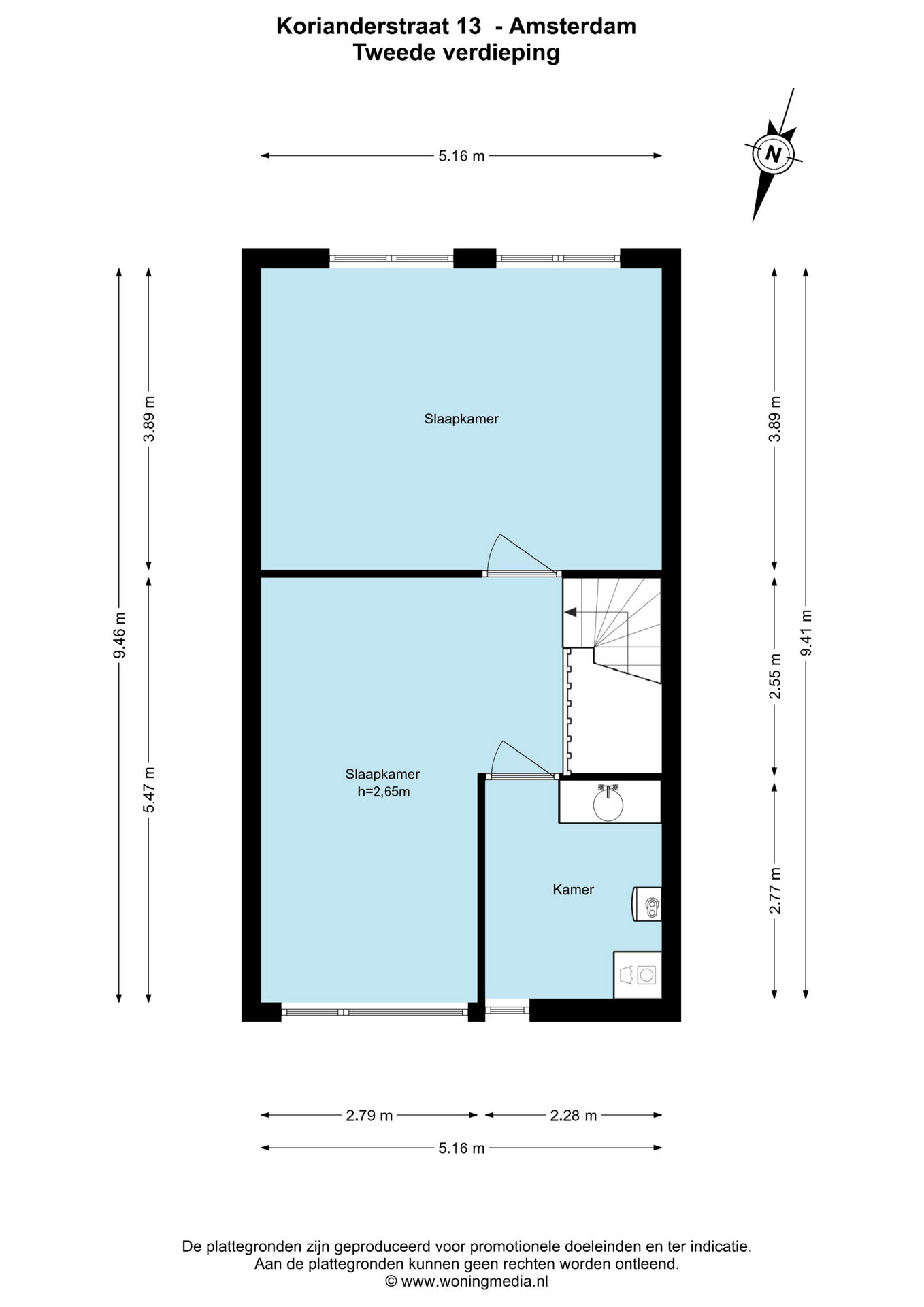 Twee royale slaapkamers waarvan er 1 momenteel open is gemaakt en een inpandige berging met wasmachine aansluiting, kitchenette en mechanische ventilatie unit. Met het terugplaatsen van het wandje heeft u weer beschikking over de tweede slaapkamer op deze verdieping.