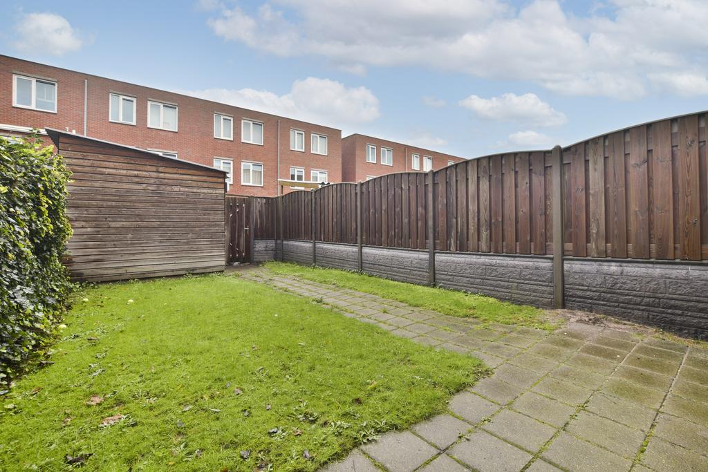 Voortuin, entree van de woning, hal, zwevend toilet met fonteintje. De doorzon woonkamer met trapkast is heerlijk licht en biedt middels een schuifpui toegang tot de achtertuin met houten berging en achterom. De moderne open keuken is voorzien van een spoelbak, vaatwasser, koelkast, vriezer, oven, magnetron, elektrische kookplaat en afzuigkap.