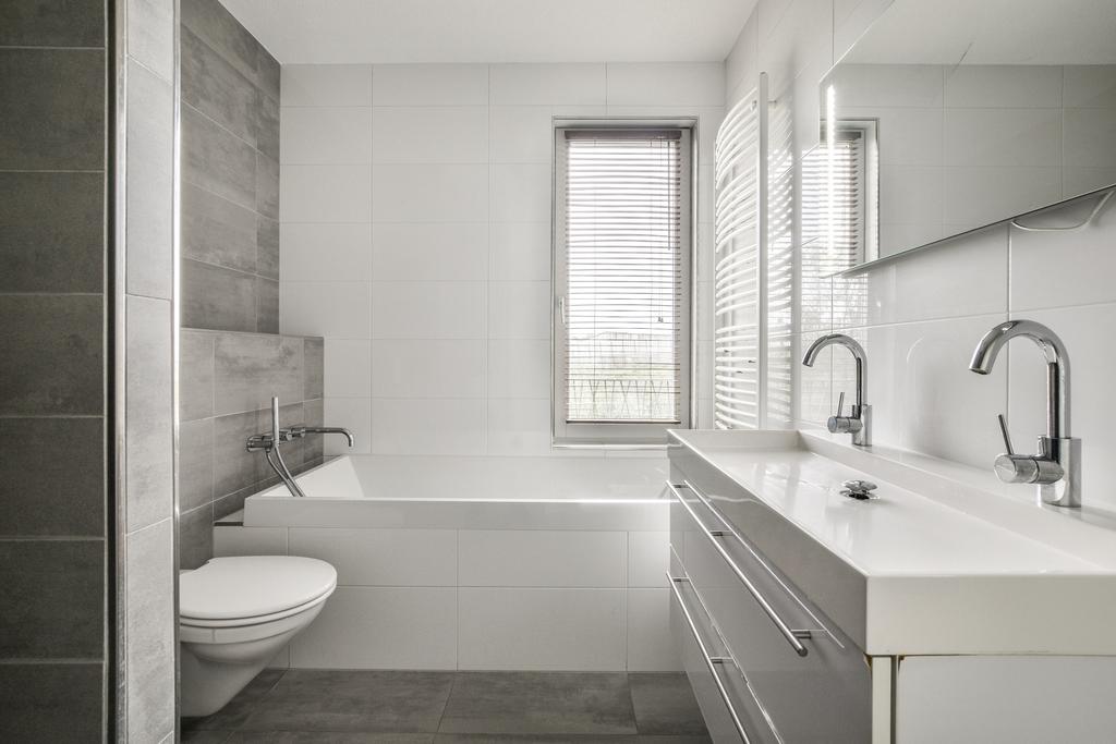 Overloop met toegang tot alle vertrekken. De geheel betegelde badkamer is luxe uitgevoerd en voorzien van een ligbad, separate regendouche, zwevend toilet en een dubbele wastafel. Op deze verdieping zijn drie slaapkamers gevestigd, waarvan één beschikt over een balkon.