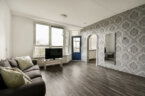 Via de centrale entree bereik je het appartement. De hal biedt toegang tot alle vertrekken en vormt het centrale punt van de woning. De ruime woonkamer maakt onderdeel uit van de gebruiksoppervlakte wonen van circa 80,8 m² en is dankzij de grote raampartijen aangenaam licht. Vanuit de woonkamer is er directe toegang tot het zonnige balkon op het zuiden.