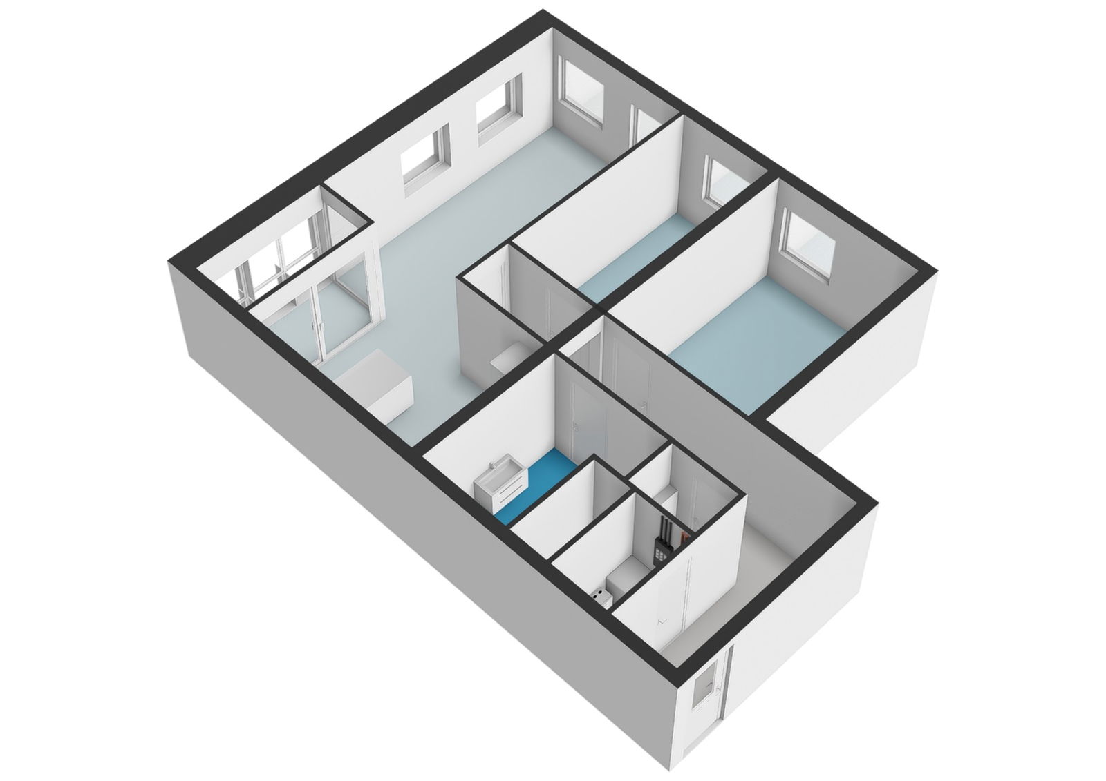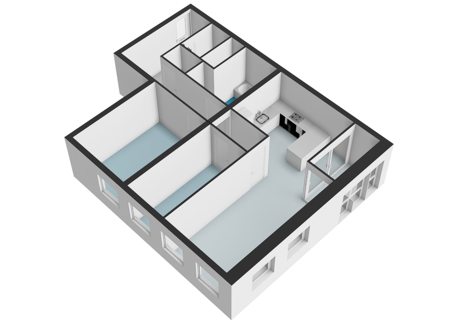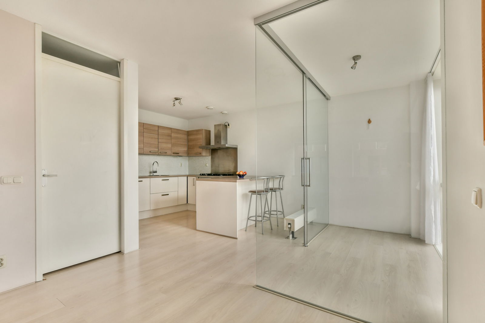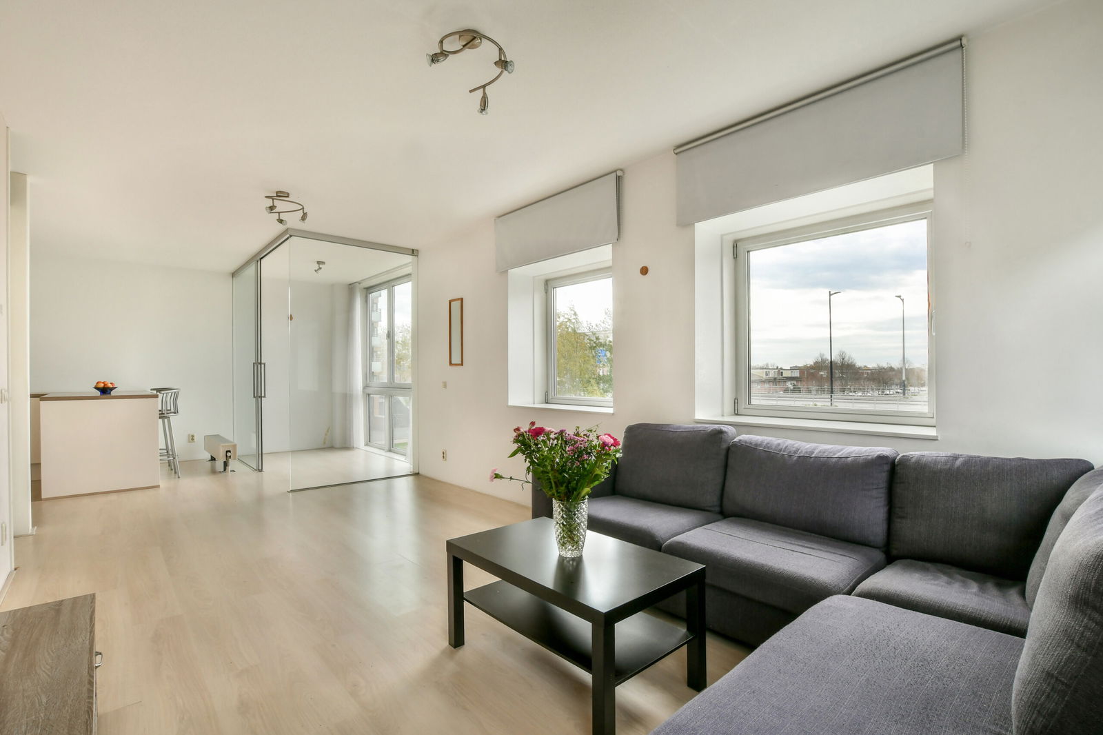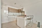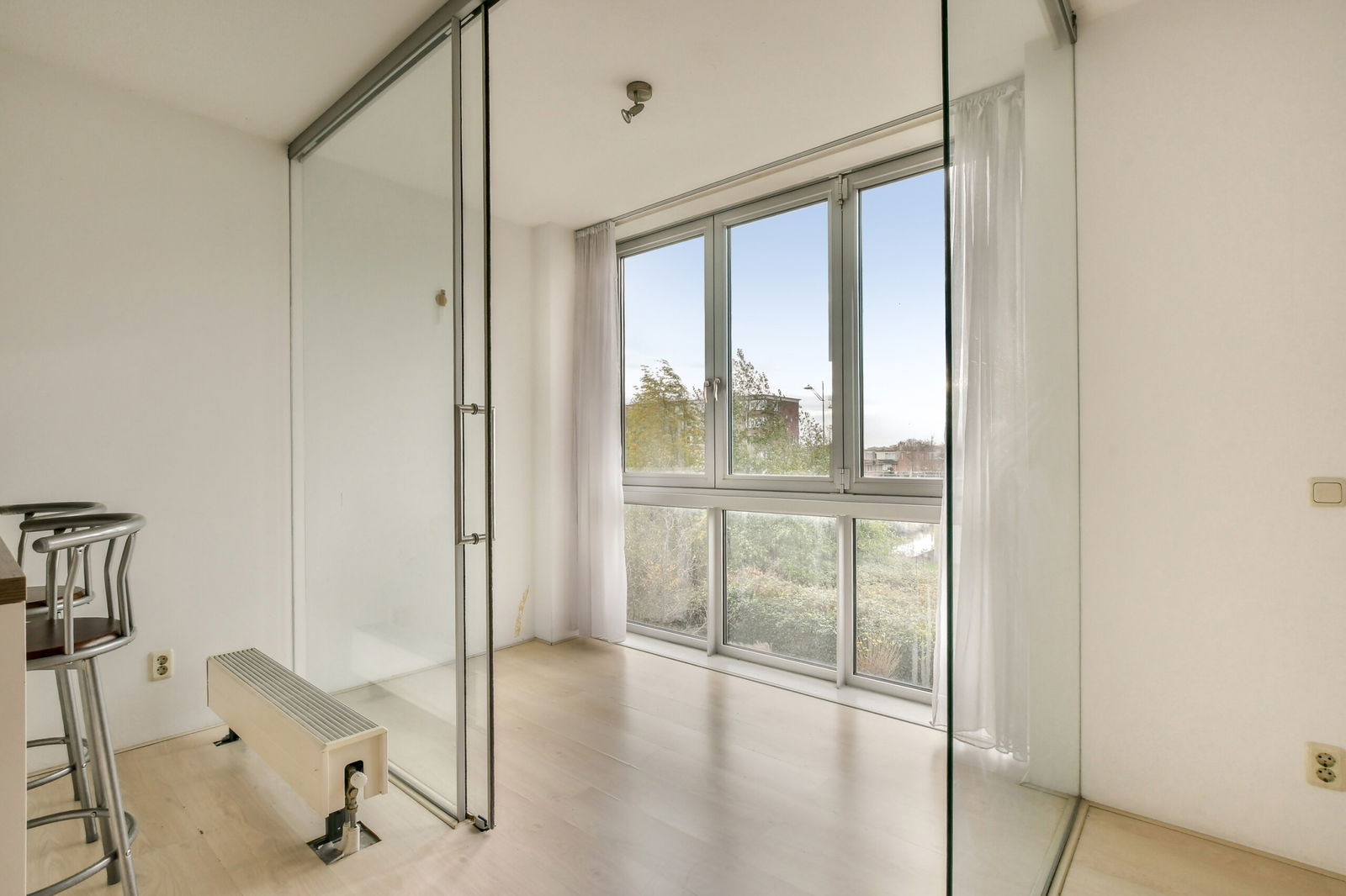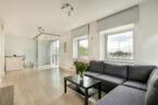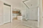 Bij binnenkomst treedt u de ruime entree binnen met een bergkast waar de technische installaties zich bevinden, waaronder de mechanische ventilatie, cv-ketel, wasmachineaansluiting en de groepenkast. Vanuit de hal bereikt u het moderne, zwevende toilet met fonteintje en de royale badkamer, uitgerust met een ligbad, aparte douche en wastafel. De gang leidt verder naar twee comfortabele slaapkamers. Aan het einde van de gang bevindt zich de lichte woonkamer met open keuken, voorzien van diverse inbouwapparatuur zoals een vaatwasser, koel-vriescombinatie, afzuigkap en een fornuis met kookplaat. Aansluitend ligt de glazen loggia, die dankzij de royale raampartijen een fijne extra leefruimte vormt.