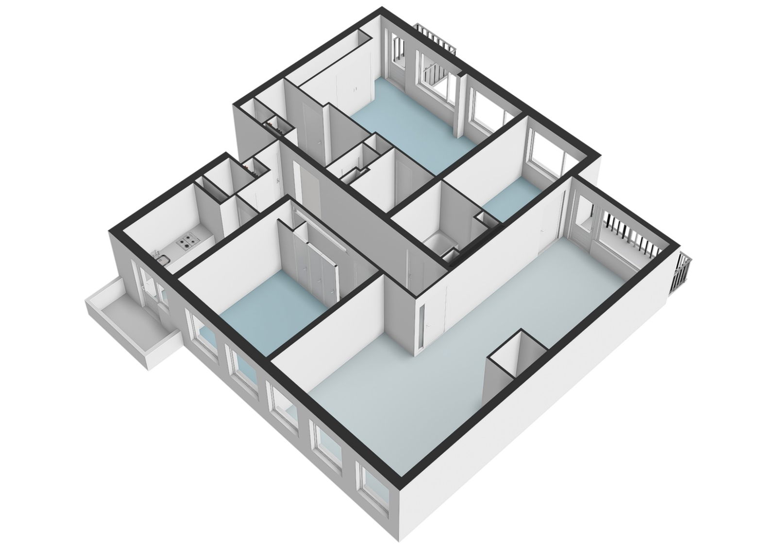De woning telt drie goed bemeten slaapkamers en twee badkamers: