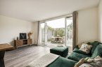 Entrance hall with access to the guest toilet with washbasin, stair cupboard, kitchen, living room, and the staircase to the first floor. The living room has large windows, is generously sized, and offers an unobstructed view of the back garden. The kitchen is located at the front. From the living room, you have access to the sunny south-facing garden. The entire ground floor is equipped with underfloor heating.