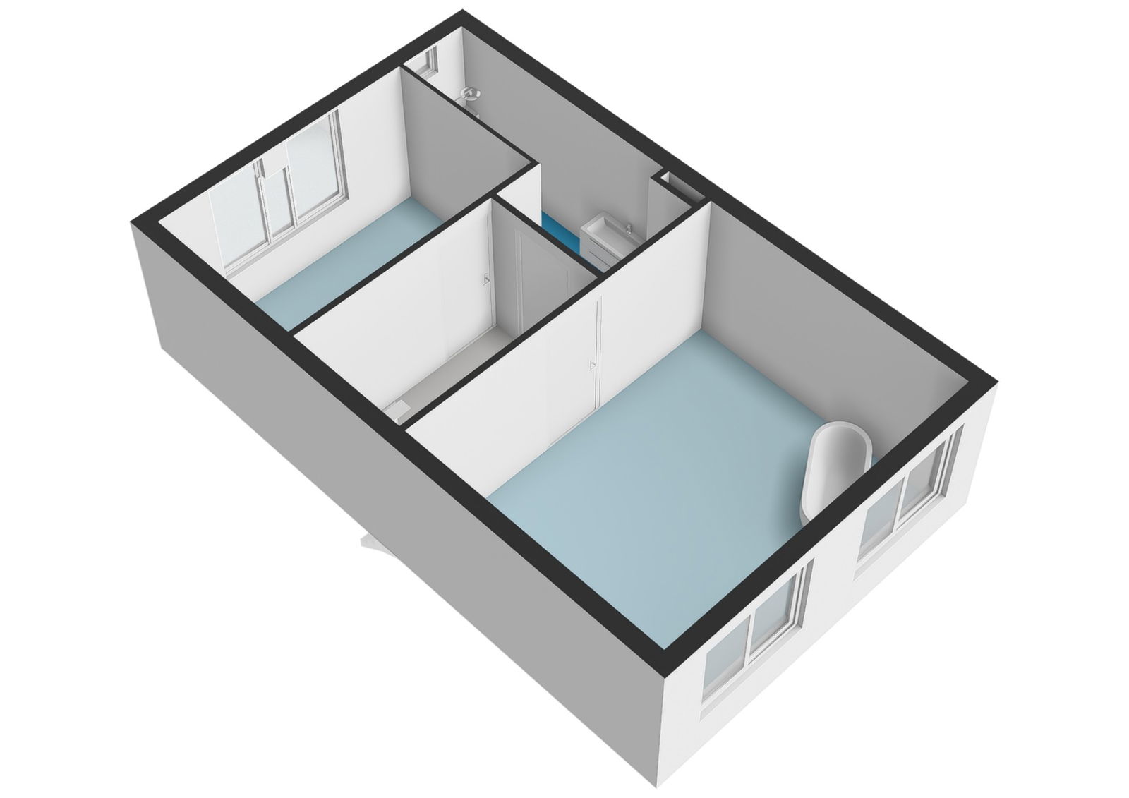 Hier bevinden zich twee slaapkamers (oorspronkelijk drie) en de badkamer. De badkamer is uitgerust met een inloopdouche, wastafel en tweede toilet.