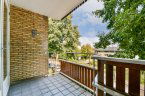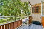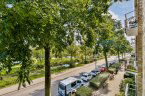 The secured central entrance of the complex provides access to the stairwell and private storage rooms. From the hallway of the apartment, all rooms are accessible: two bedrooms, the renovated bathroom, the separate toilet, and the bright living room with access to the front balcony. The living room flows into the modern kitchen, which was completely renewed in 2022 and luxuriously equipped with built-in appliances and ample storage space. From the kitchen, there is also access to the second balcony. The bathroom has been stylishly updated with a spacious walk-in shower and double sink, while the toilet is separately accessible from the hall.