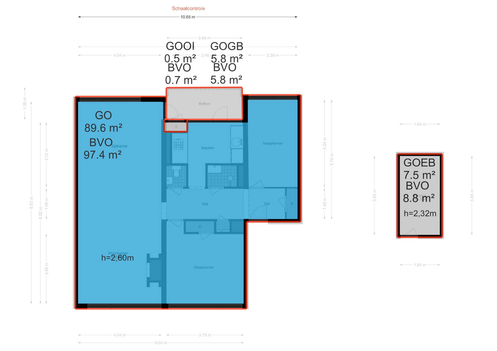 90 m2 - 2 slaapkamers - bouwjaar 1957