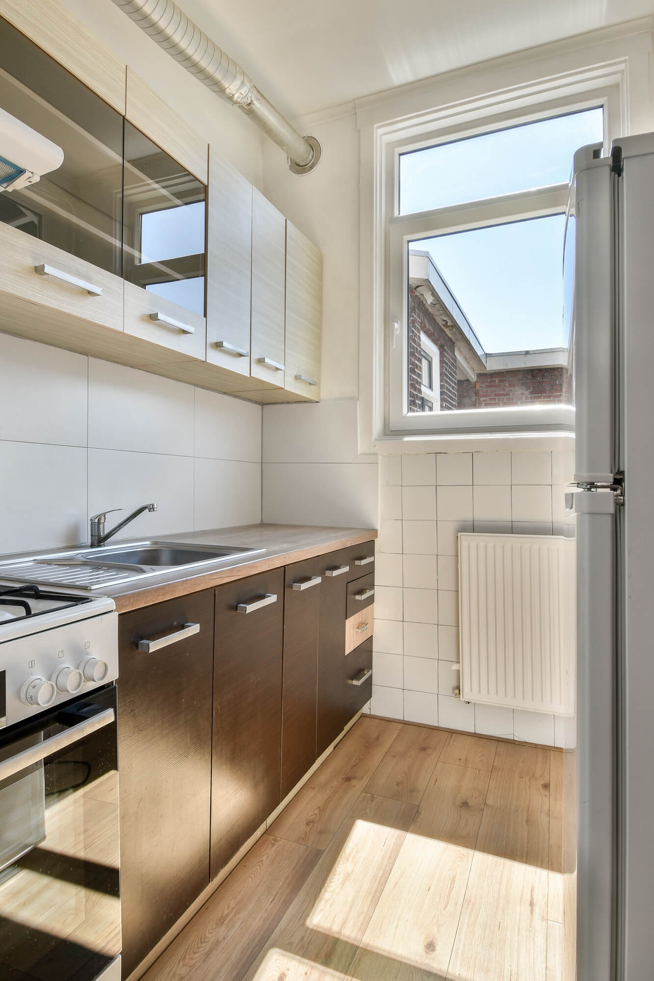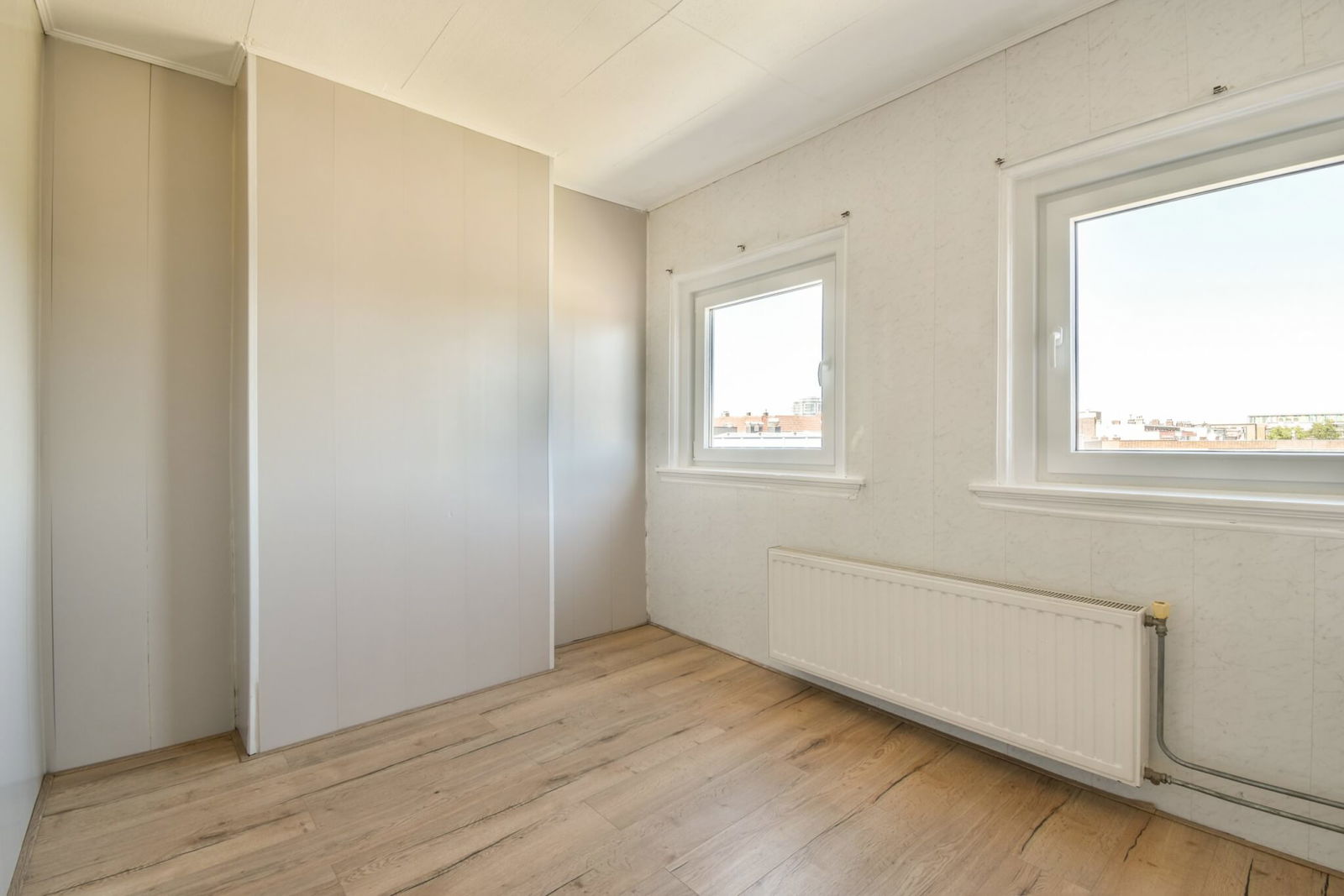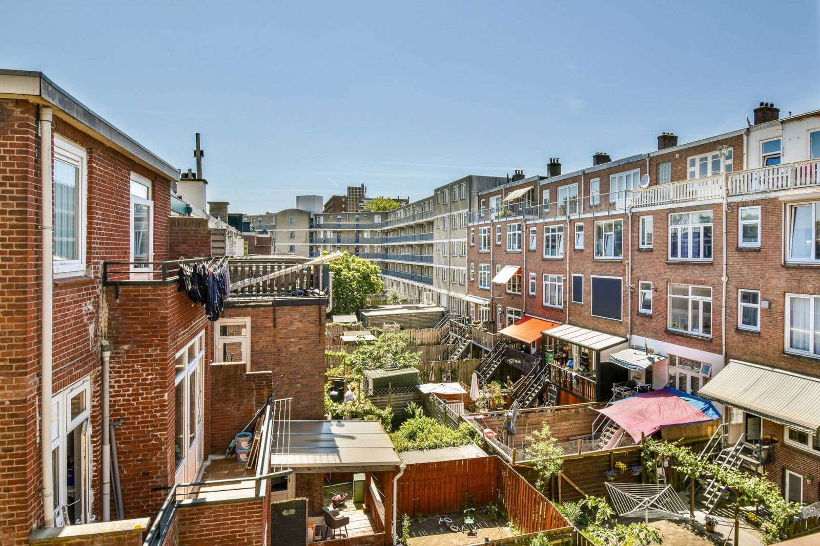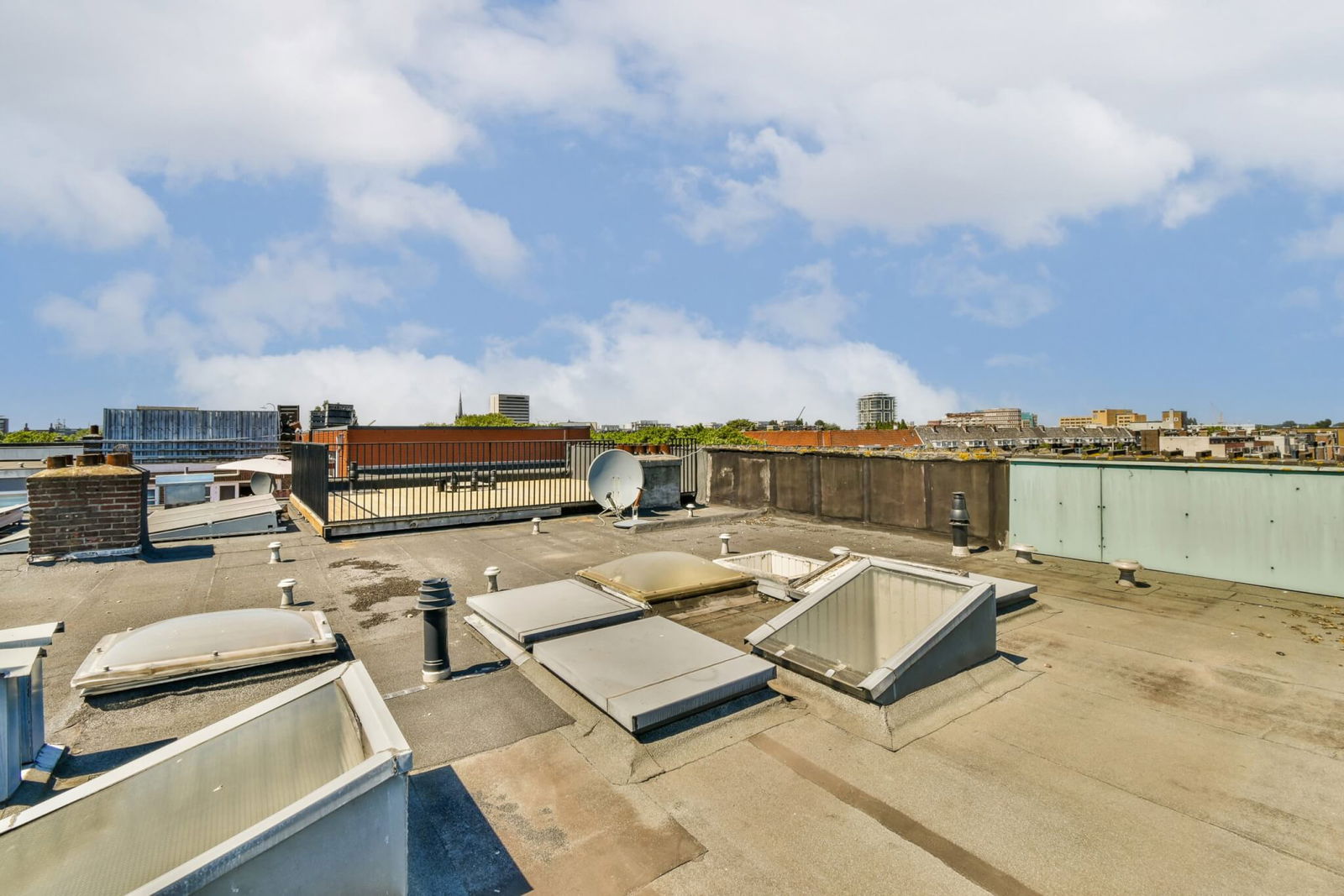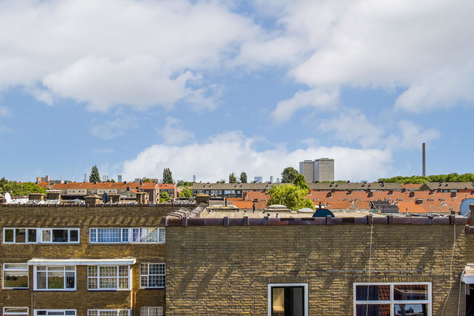 De bovenste etage biedt bovendien directe toegang tot het dak. Diverse buren hebben hier al een dakterras gerealiseerd – een uitstekende kans om jouw eigen buitenruimte te creëren met uitzicht over de stad!