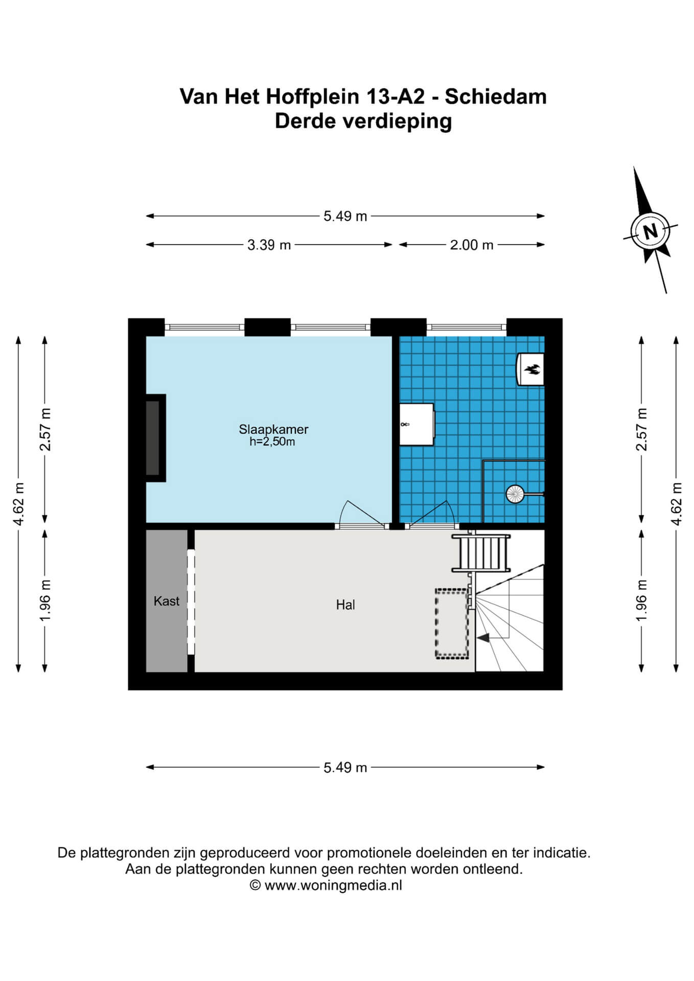 Op deze verdieping bevinden zich nog twee slaapkamers en een separaat toilet. De ruime hal geeft toegang tot de trap naar de derde verdieping, waar een derde slaapkamer én een badkamer met douche en wastafel te vinden zijn.