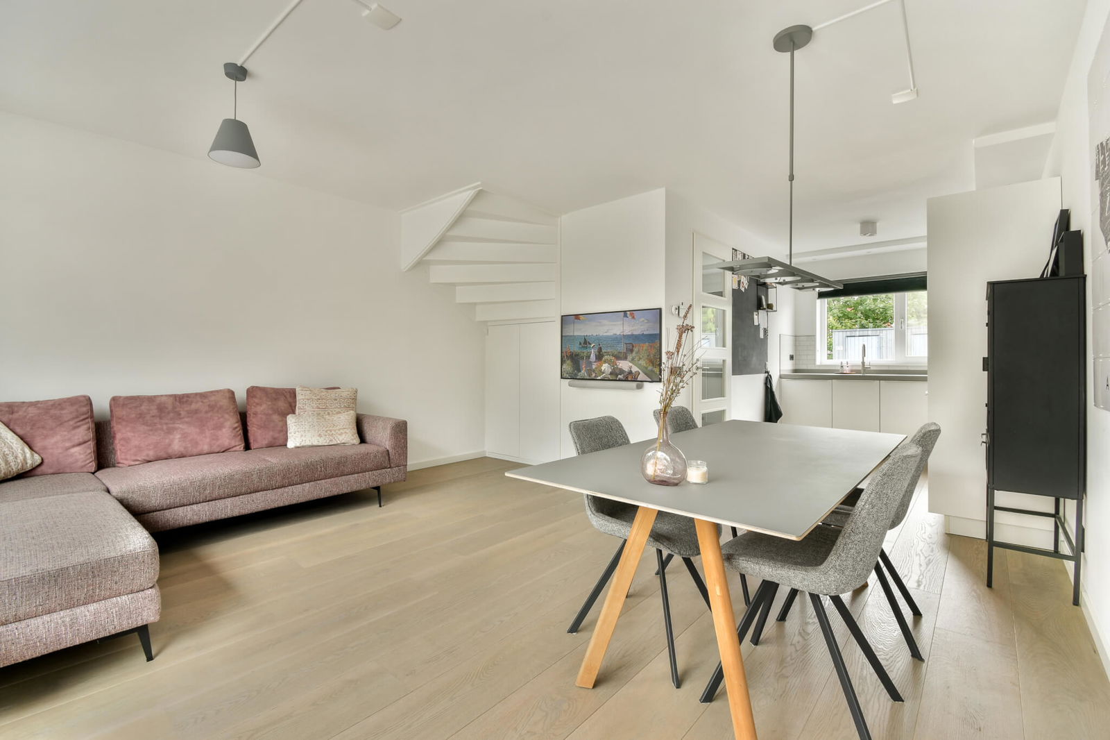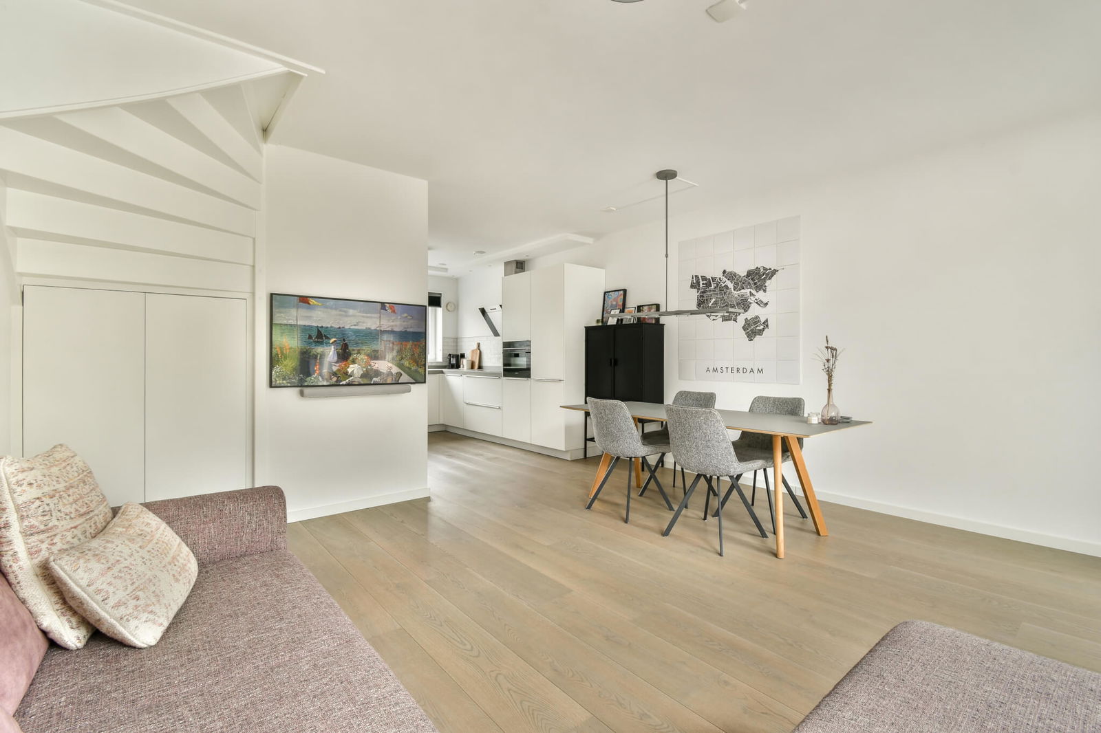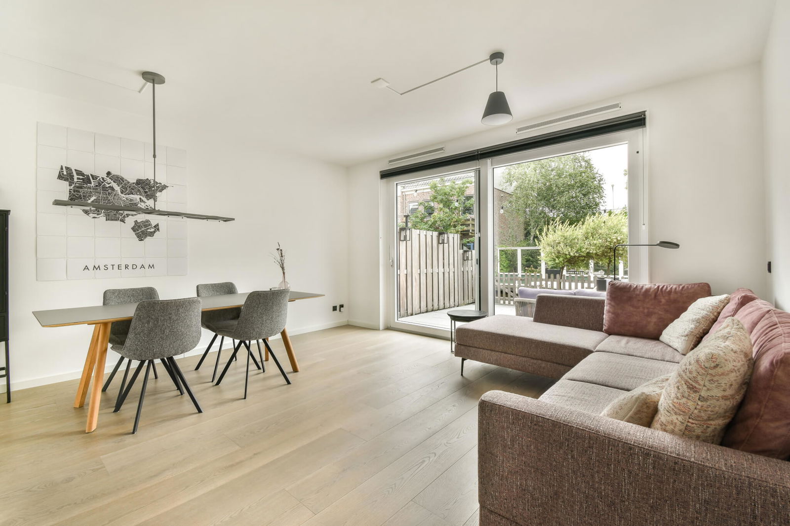 De lichte woonkamer biedt een prachtig uitzicht op de tuin en het water. De luxe open keuken is voorzien van hoogwaardige inbouwapparatuur en vormt het hart van de leefruimte. Via de schuifpui loopt u zo de zonnige tuin in.