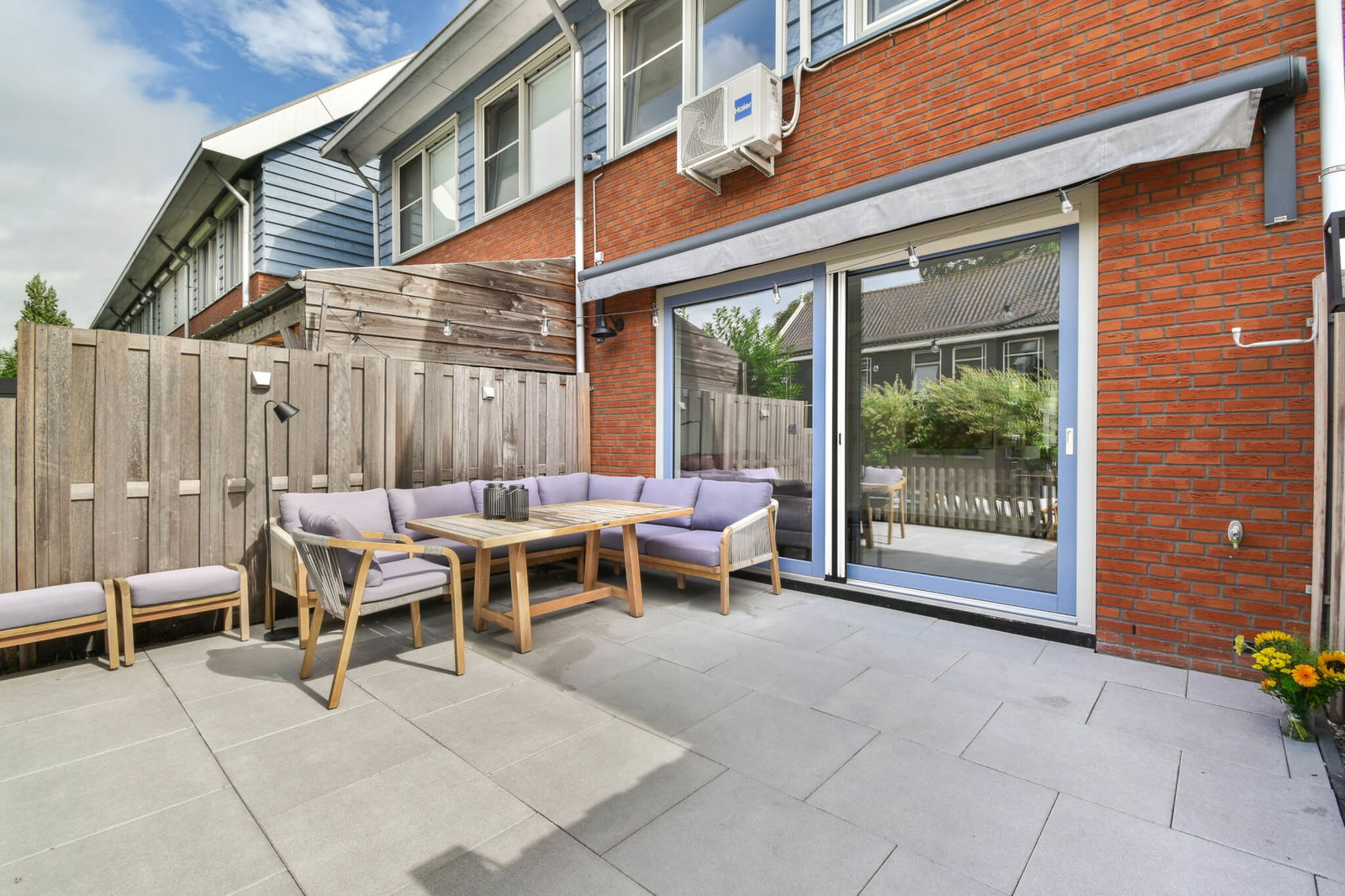 Buitenruimte: zonnige tuin op het zuidwesten, bereikbaar via een schuifpui vanuit de woonkamer.