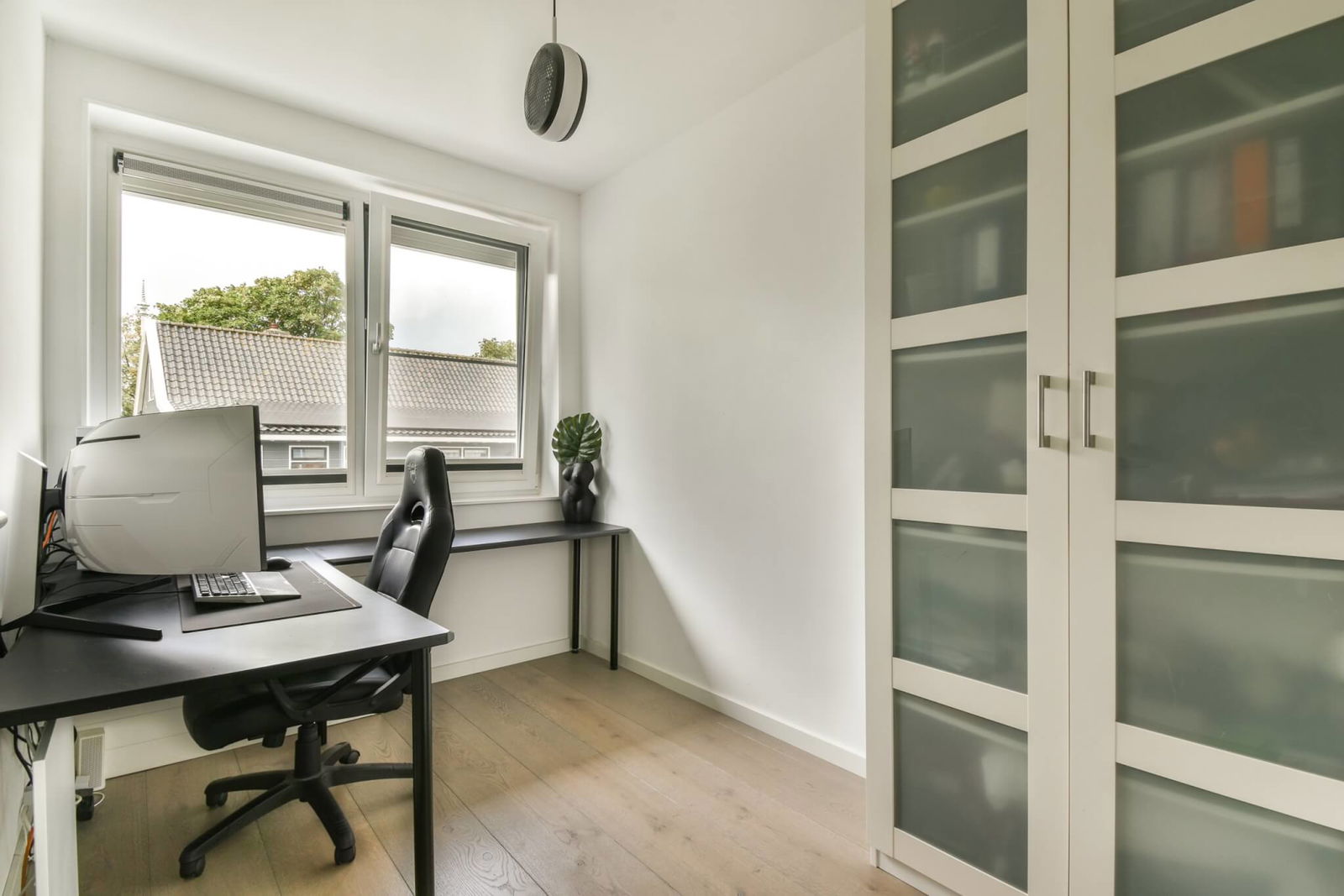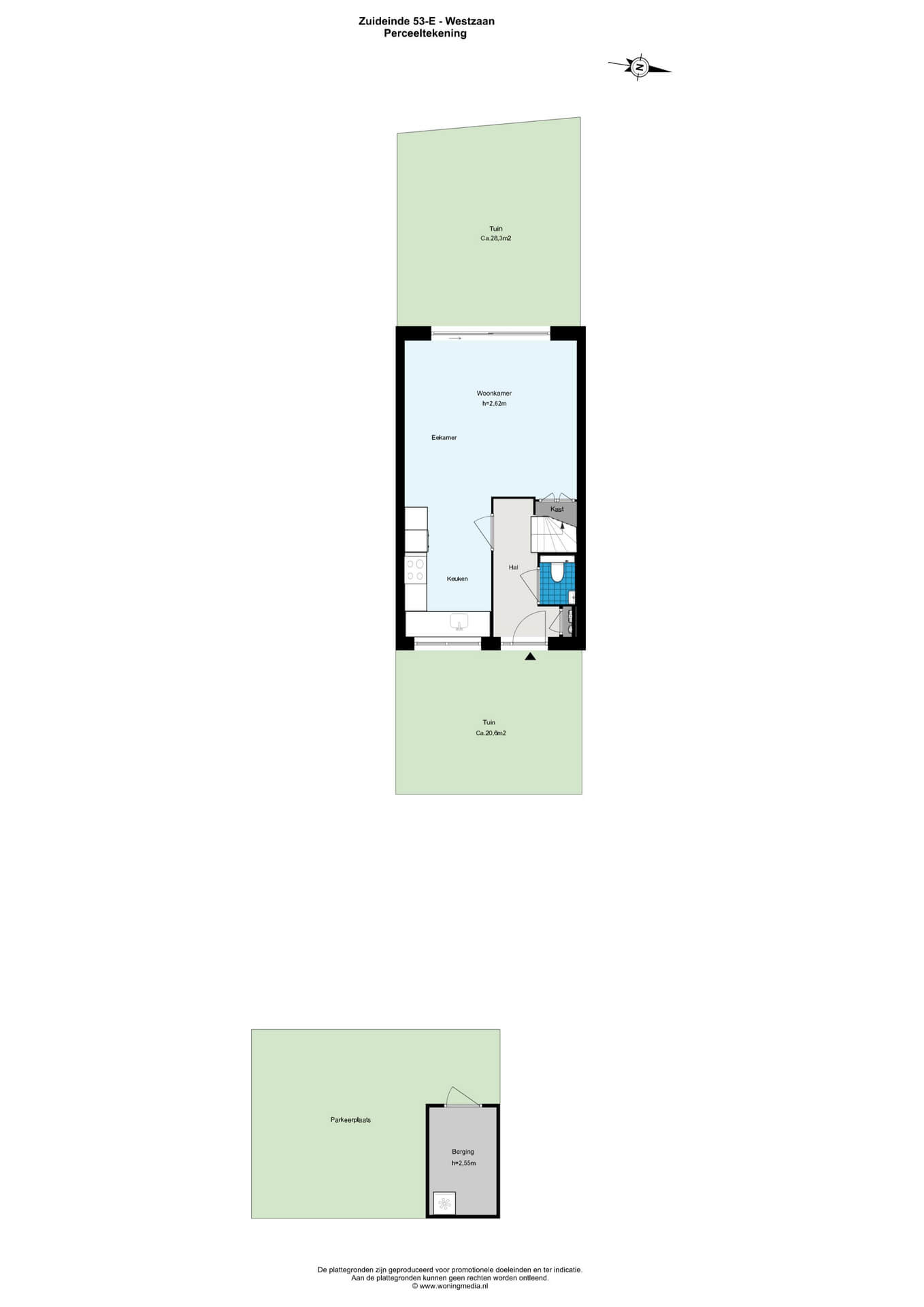 Eigen voorzieningen: eigen parkeerplaats en separate berging recht tegenover de woning.